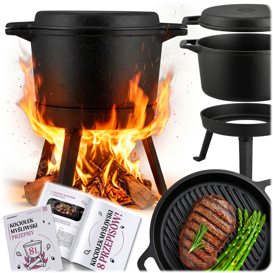 Kociołek żeliwny do ogniska sprawdza się w wielu sytuacjach – od rodzinnych spotkań w ogrodzie, przez biwaki i wyprawy w teren, aż po większe imprezy plenerowe. Dzięki swojej konstrukcji pozwala przygotować jedzenie dla kilku lub nawet kilkunastu osób jednocześnie, co czyni go świetną alternatywą dla klasycznego grilla. W kociołku można gotować zupy, gulasze, pieczonki, potrawy jednogarnkowe czy dania inspirowane kuchnią regionalną. W przeciwieństwie do smażenia na patelni, potrawy przygotowywane w żeliwnym garnku duszą się we własnych sokach, co nadaje im intensywny smak i aromat ogniska. Kociołek myśliwski często wykorzystywany jest także podczas wyjazdów survivalowych lub w turystyce bushcraftowej, gdzie liczy się trwałość sprzętu i możliwość gotowania w każdych warunkach.