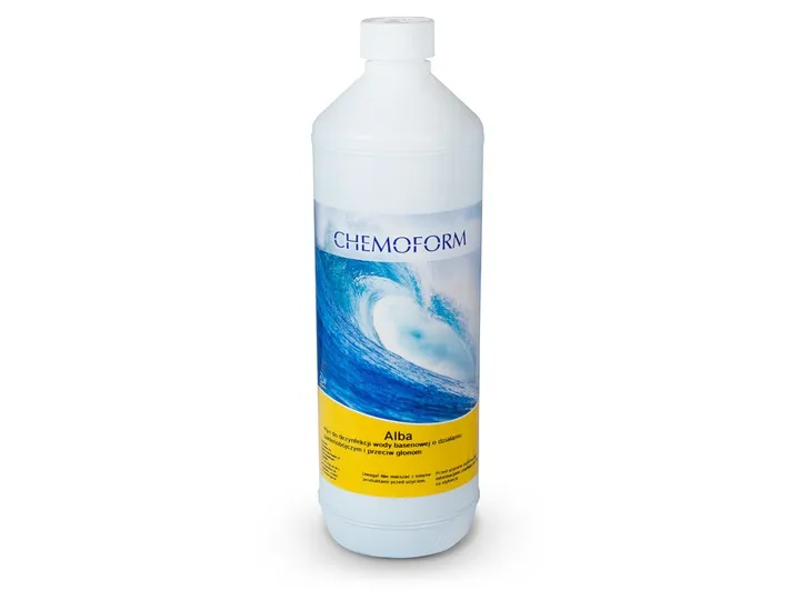 Alba to produkt, który działa przeciw glonom, powstającym w wodzie basenowej. Preparat w płynie nie zawiera chloru i jest bezzapachowy. Można go stosować samodzielnie lub w połączeniu z innymi chemikaliami i chlorem.