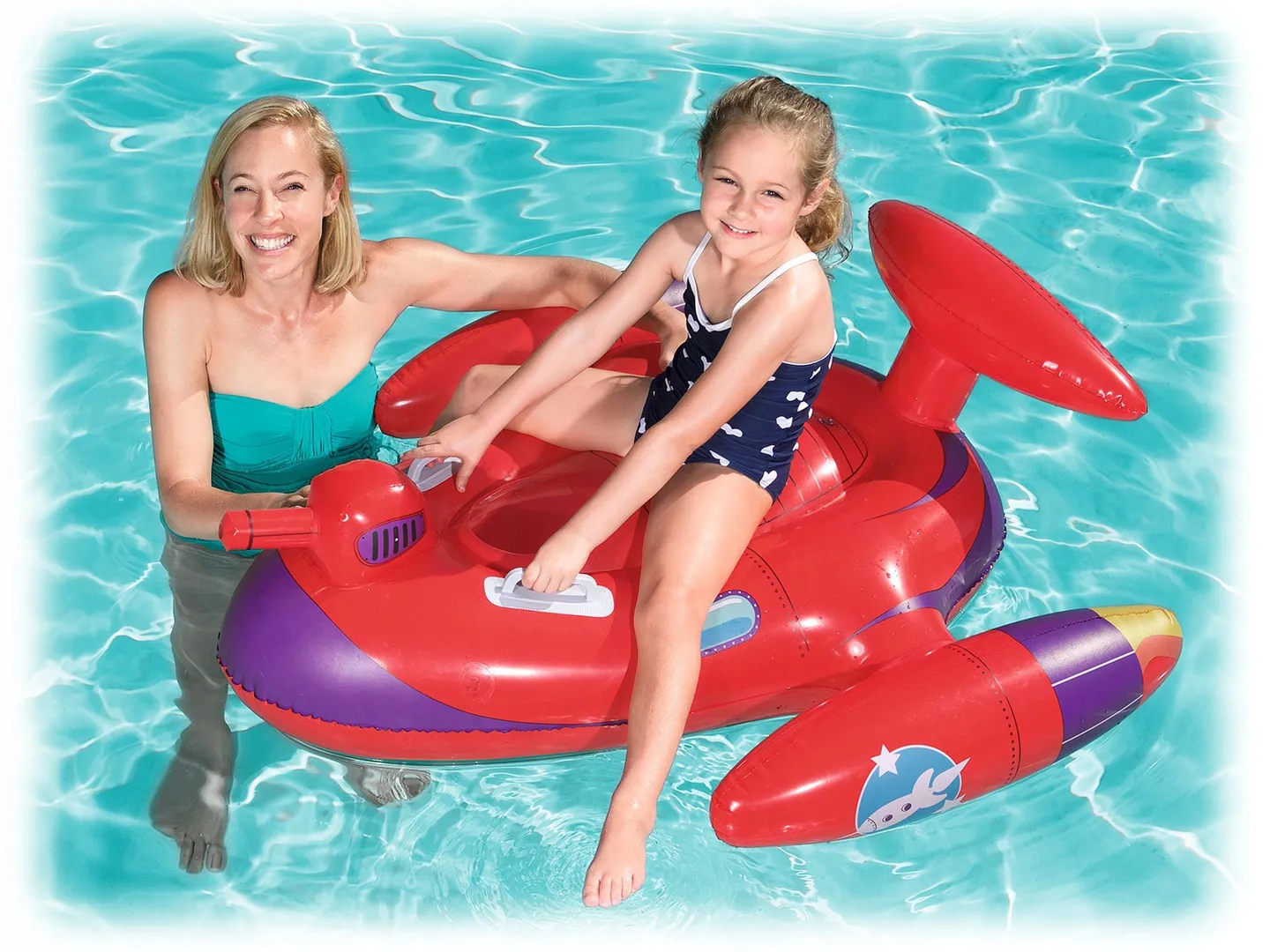 Po nadmuchaniu samolot osiąga wymiary 109 x 89 cm, więc posłuży Twojemu dziecku jako materac na wodzie.