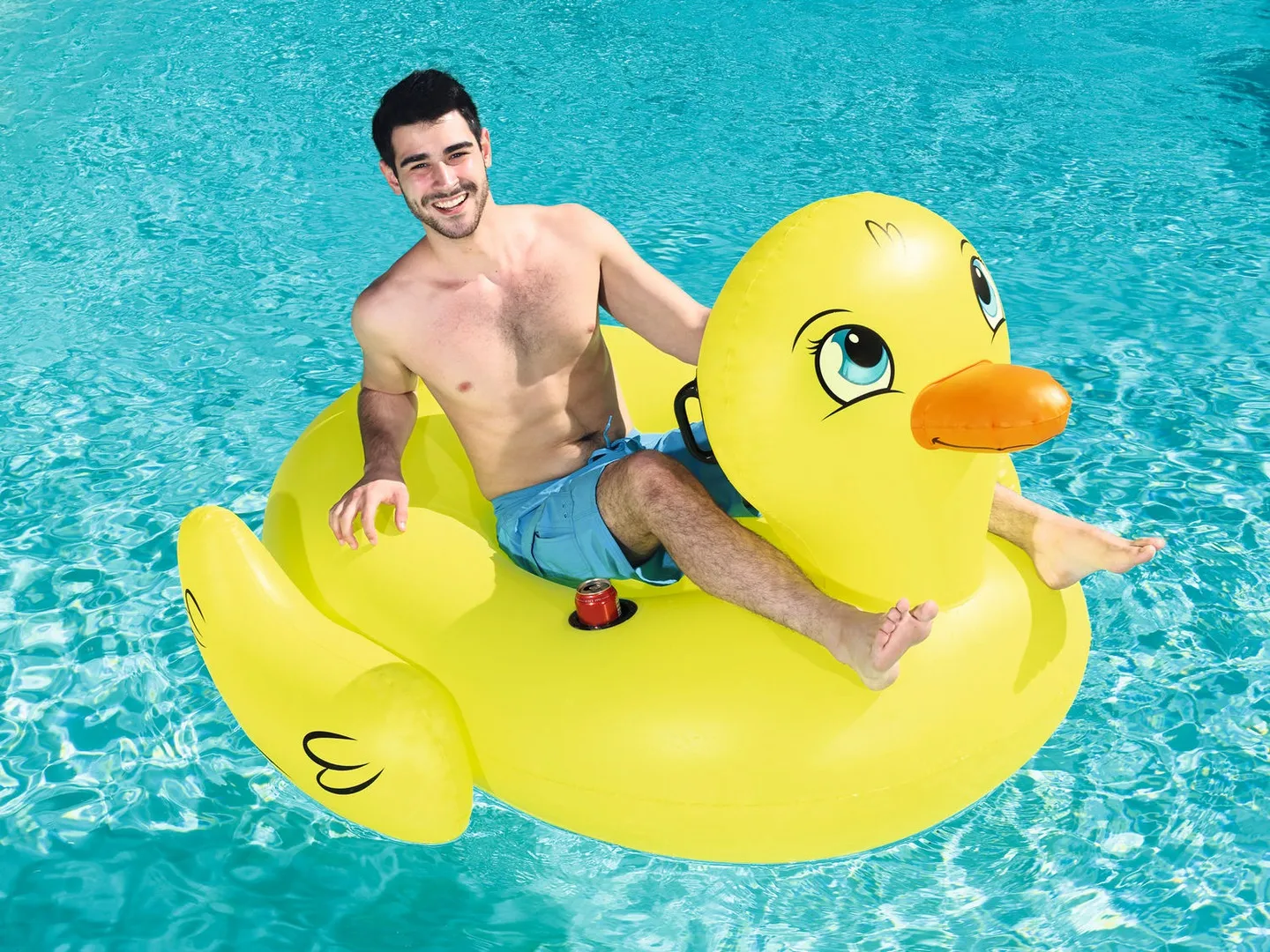 Oryginalny dmuchany materac w kształcie kaczki to hit najbliższego sezonu.