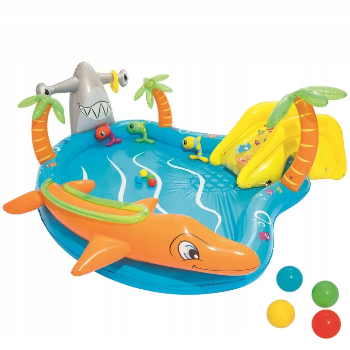 Dmuchana zjeżdżalnia, basen, wodna fontanna i inne akcesoria zapewnią dziecku zabawę na kilka długich godzin.