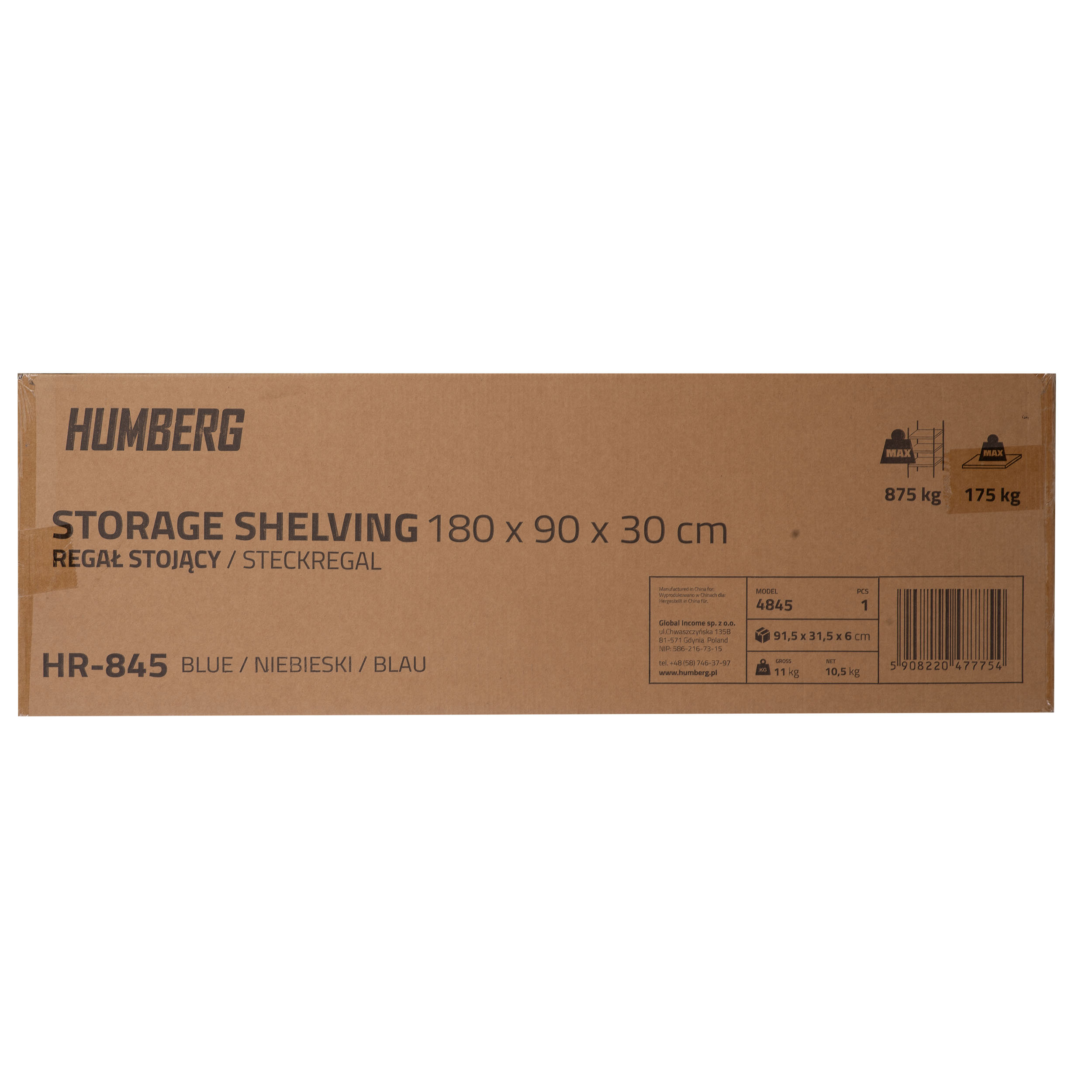 Funkcjonalny i stabilny regał magazynowy w kolorze niebieskim, który znakomicie sprawdzi się w: