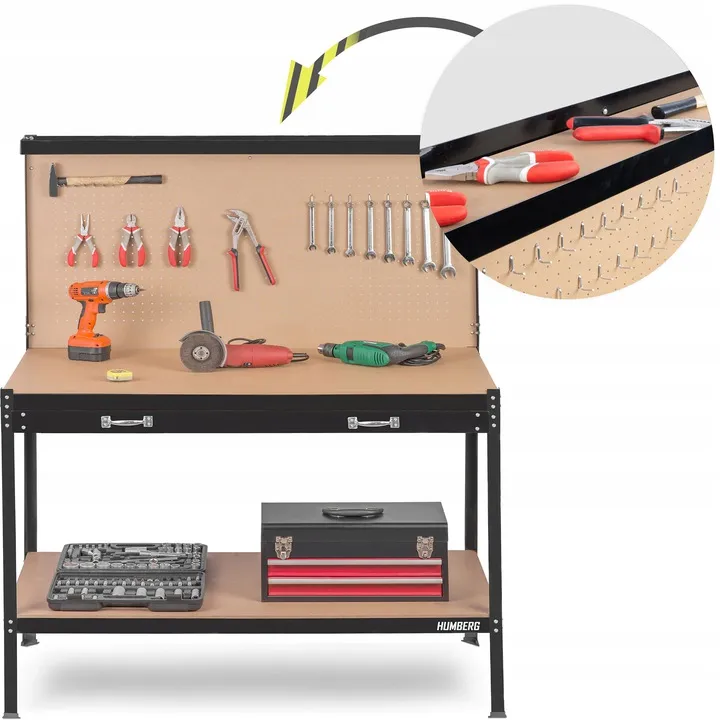 Humberg HM-590 to doskonalej jakości stół roboczy - sprawdzi się zarówno w magazynie, hali produkcyjnej, w garażu czy w przydomowym warsztacie.