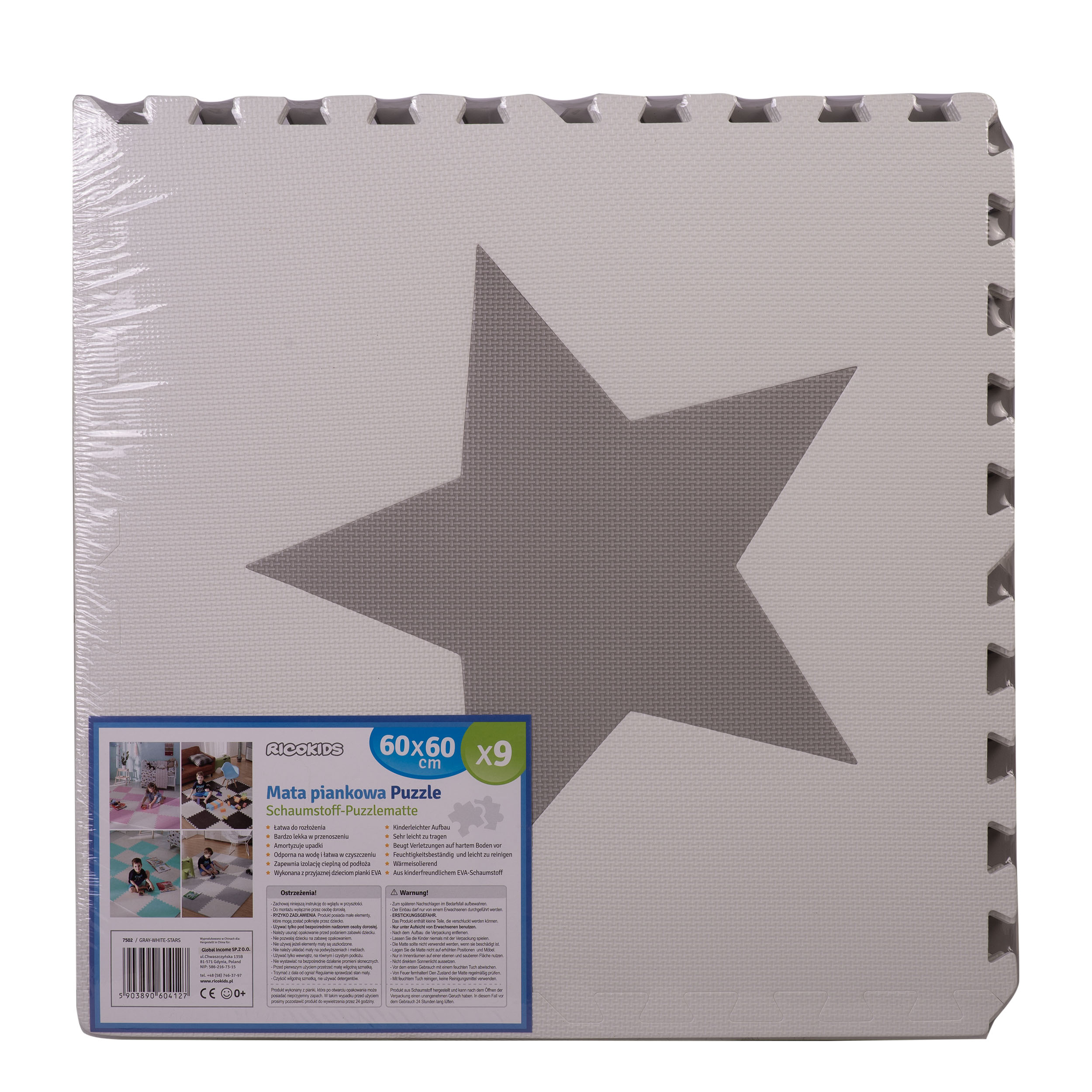 Mata piankowa Ricokids to 9 dużych puzzli o wymiarze 60 x 60 cm, które możesz układać, wraz ze swoim maluszkiem, w dowolnej konfiguracji.