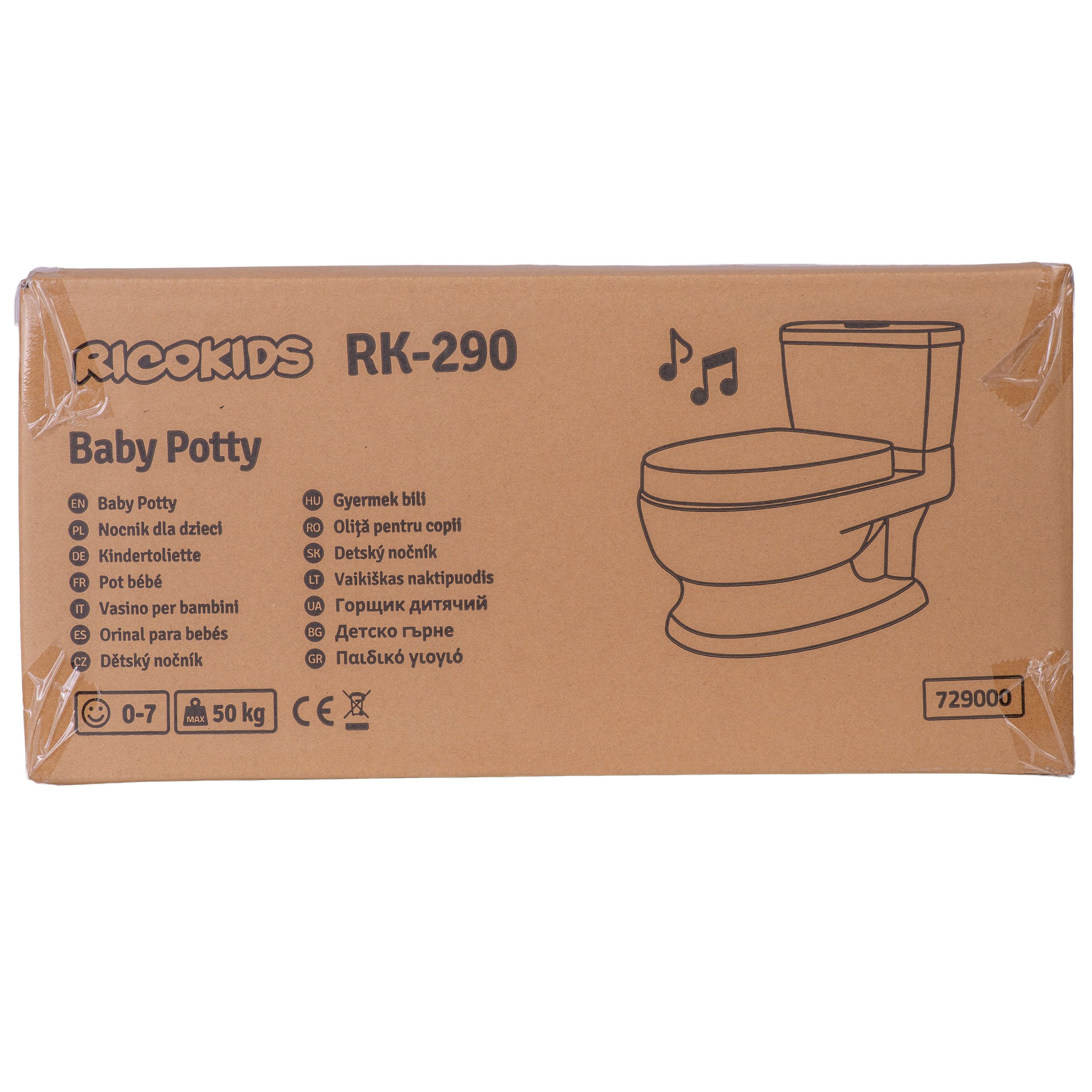 Nocnik posiada melodyjki, które dziecko może uruchomić po naciśnięciu przycisku symulującego spłuczkę.