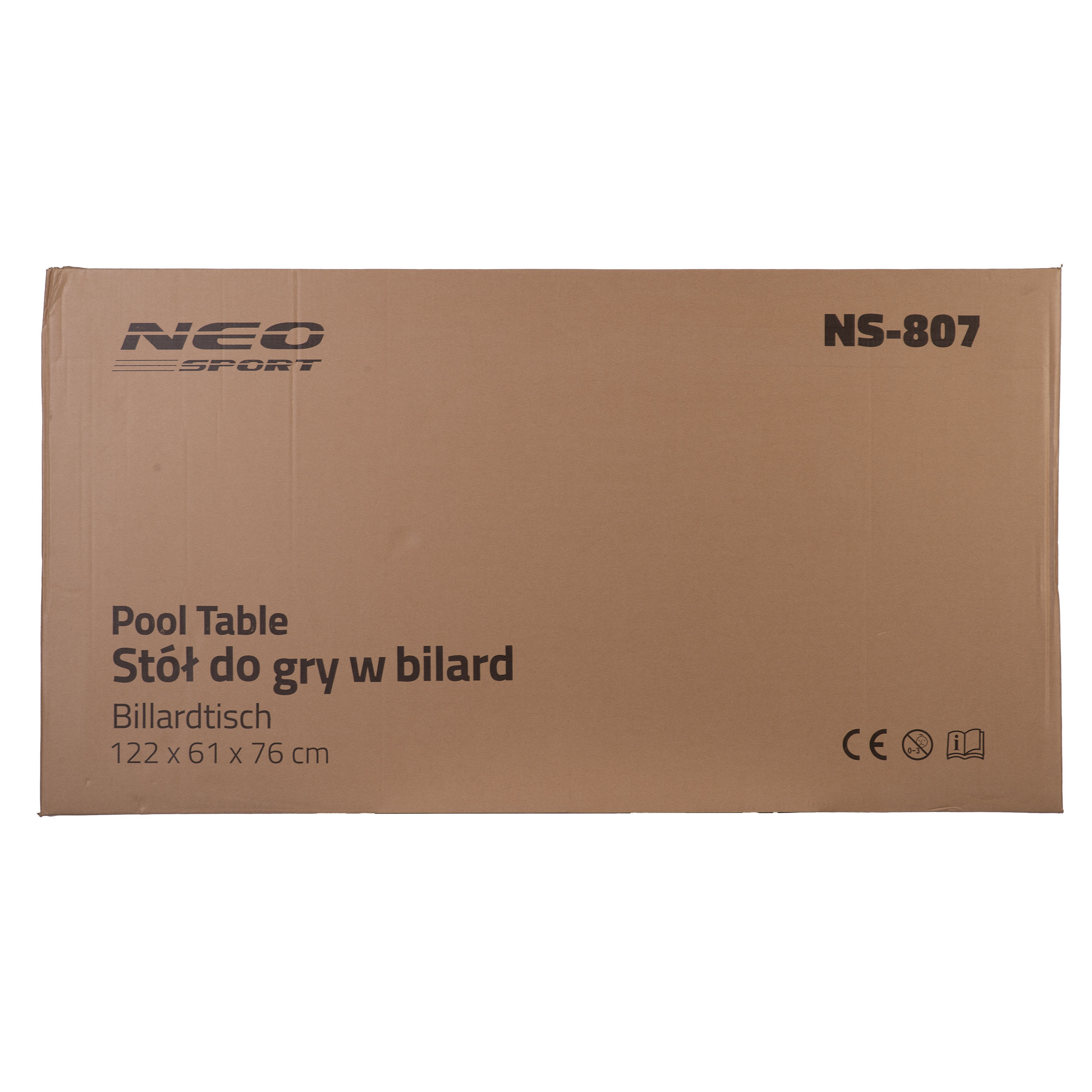Model NS-807 rozstawisz szybko i bez problemu. Stół stoi pewnie i stabilnie, dzięki czemu dzieciaki mogą skupić się na przyjemności z grania. W komplecie otrzymujesz pełen zestaw akcesoriów, czyli 2 kije, 16 bil, trójkąt, kredę bilardową i szczotkę do czyszczenia. Słowem, pełen profesjonalizm! W sam raz do wyszkolenia młodego mistrza bilarda.
