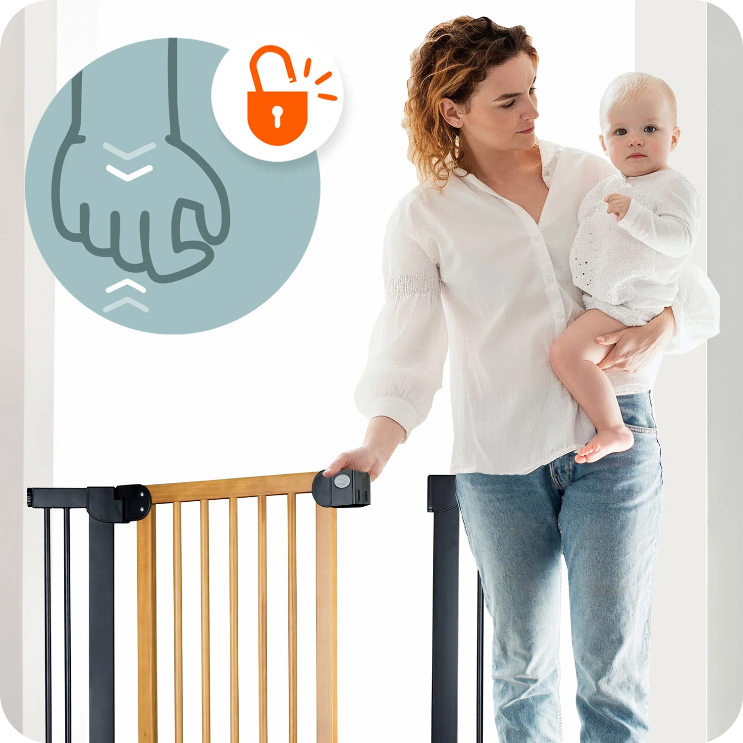 Regulowana szerokość pozwala na zamontowanie jej w drzwiach i przejściach od 76 do 104 cm.