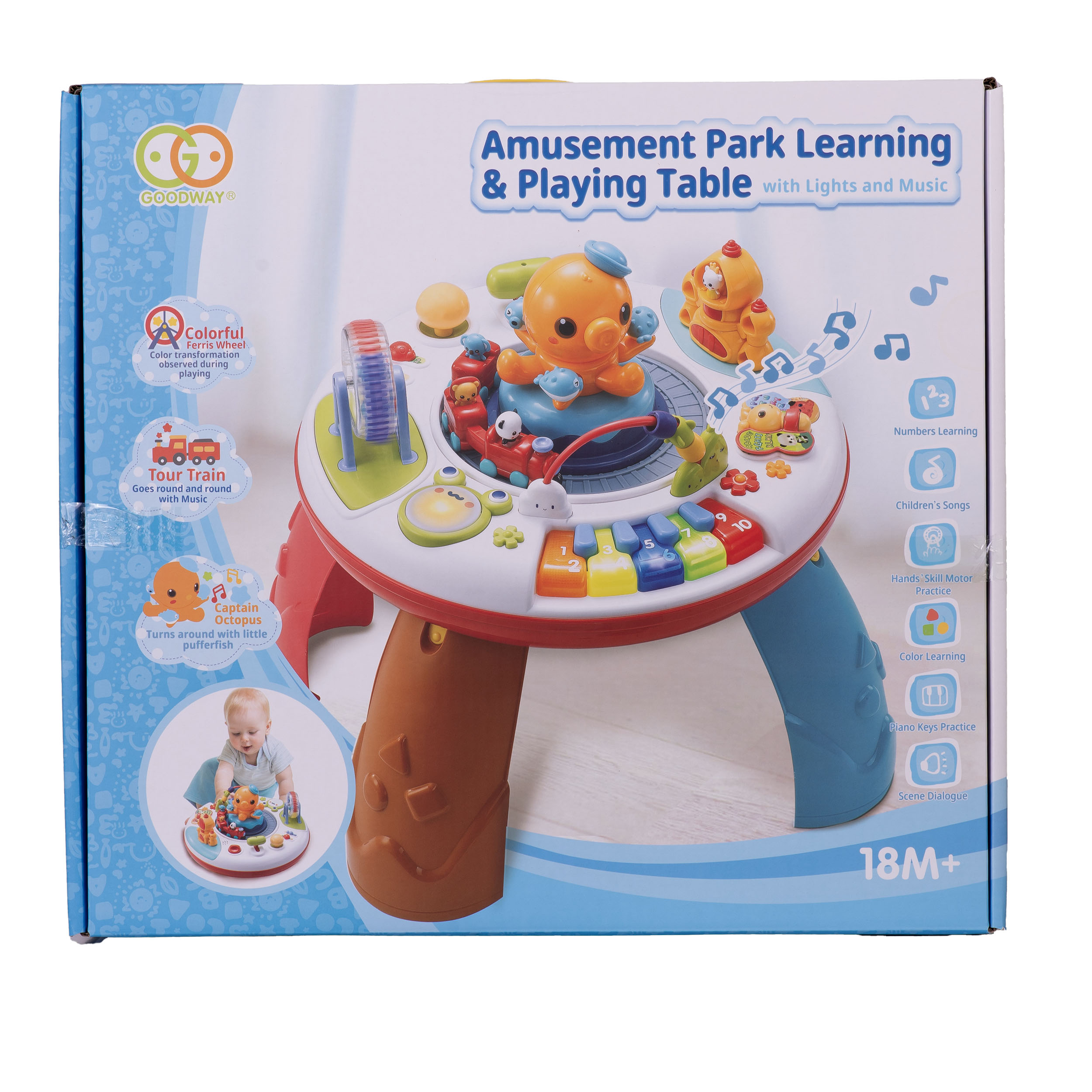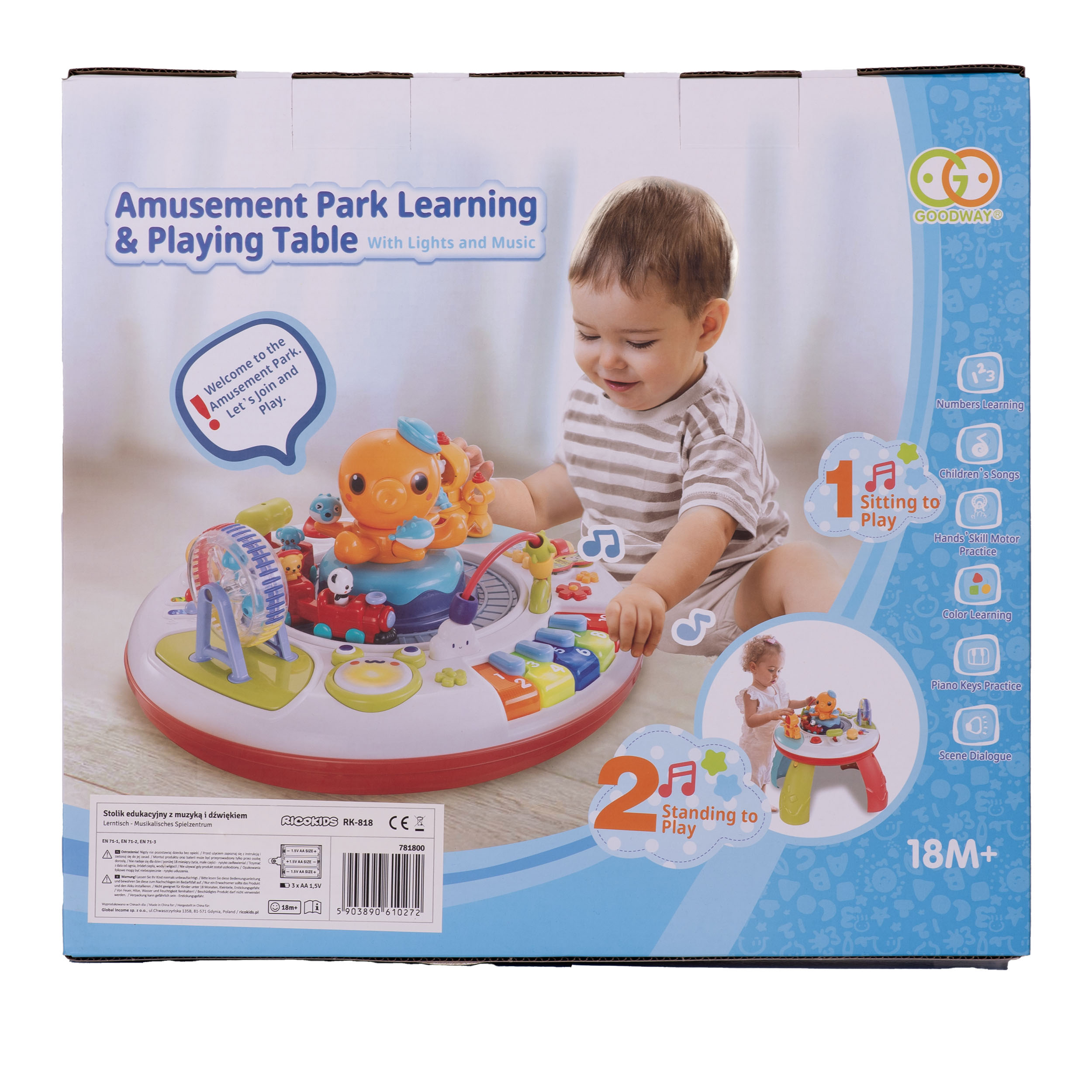 Produkt idealnie nadaje się do nauki liczb, kolorów i kształtów. Wyjmowany panel może być używany jako tablica edukacyjna, a po dodaniu do niego nóżek w szybki sposób zmienia się w stolik edukacyjny.
