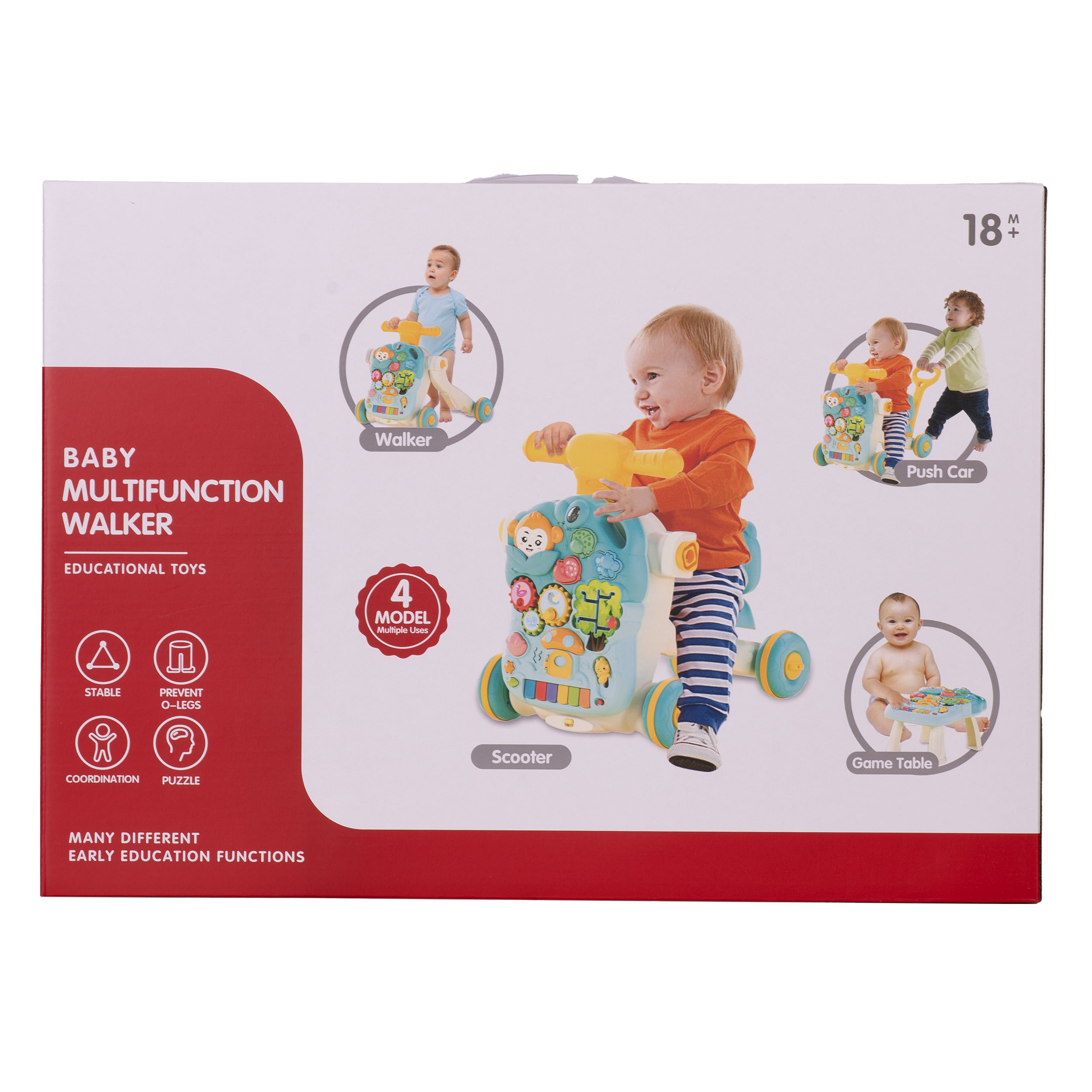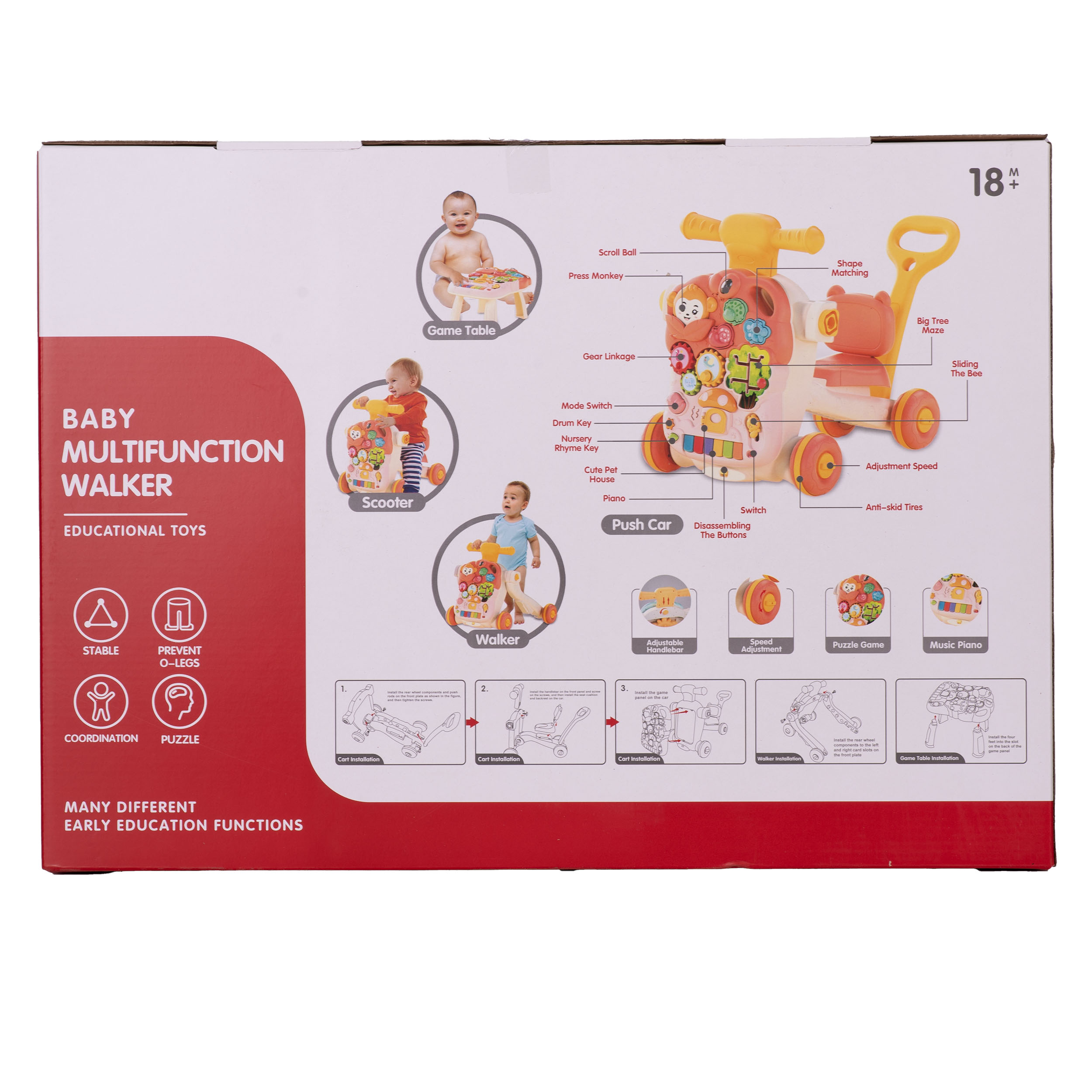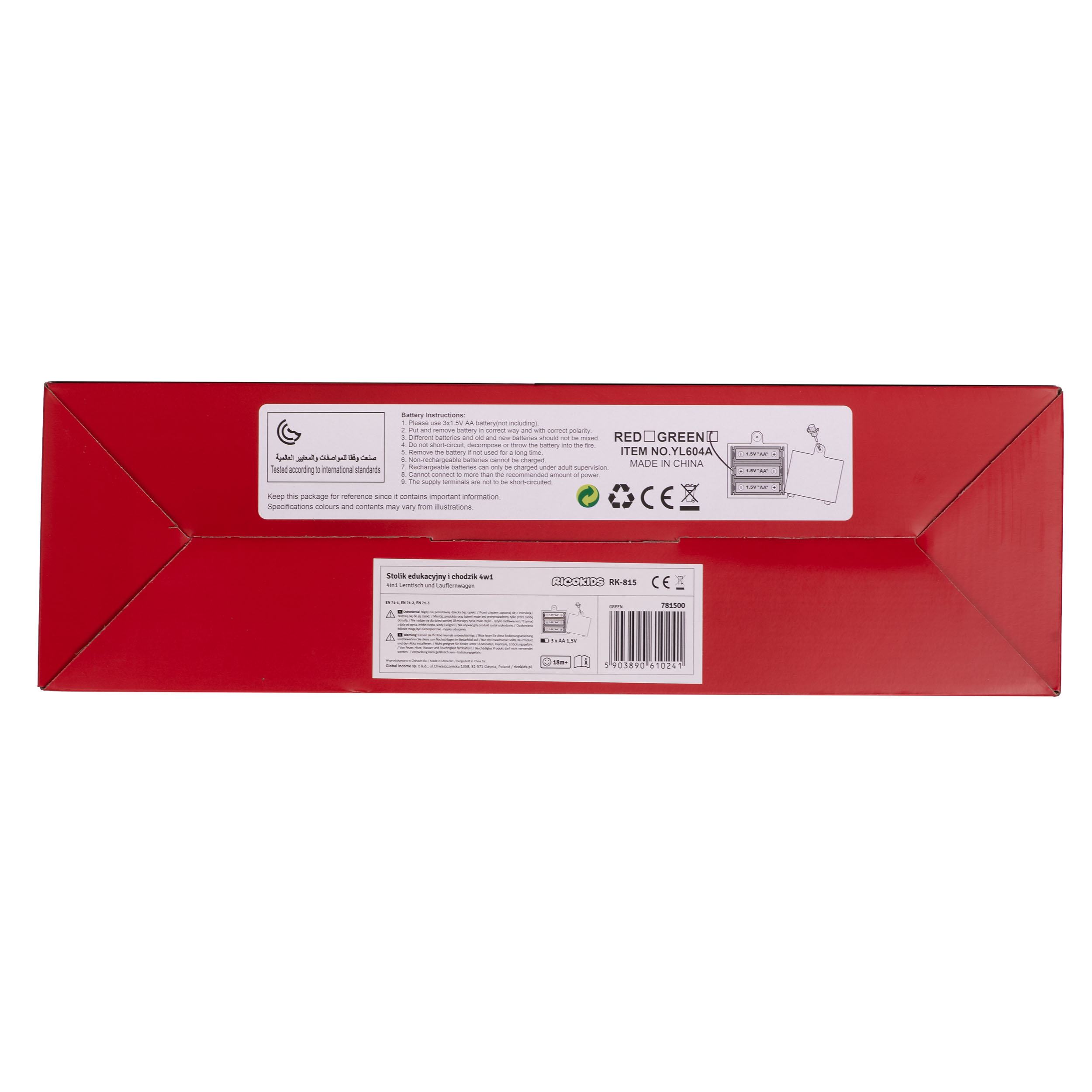 Oprócz nauki chodzenia, produkt idealnie nadaje się do nauki liczb, kolorów i kształtów. Wyjmowany panel (aby wyjąć panel, należy nacisnąć przycisk znajdujący się z dołu konstrukcji, aby zwolnić zaczep) może być używany jako tablica edukacyjna, a po dodaniu do niego nóżek w szybki sposób zmienia się w stolik edukacyjny.