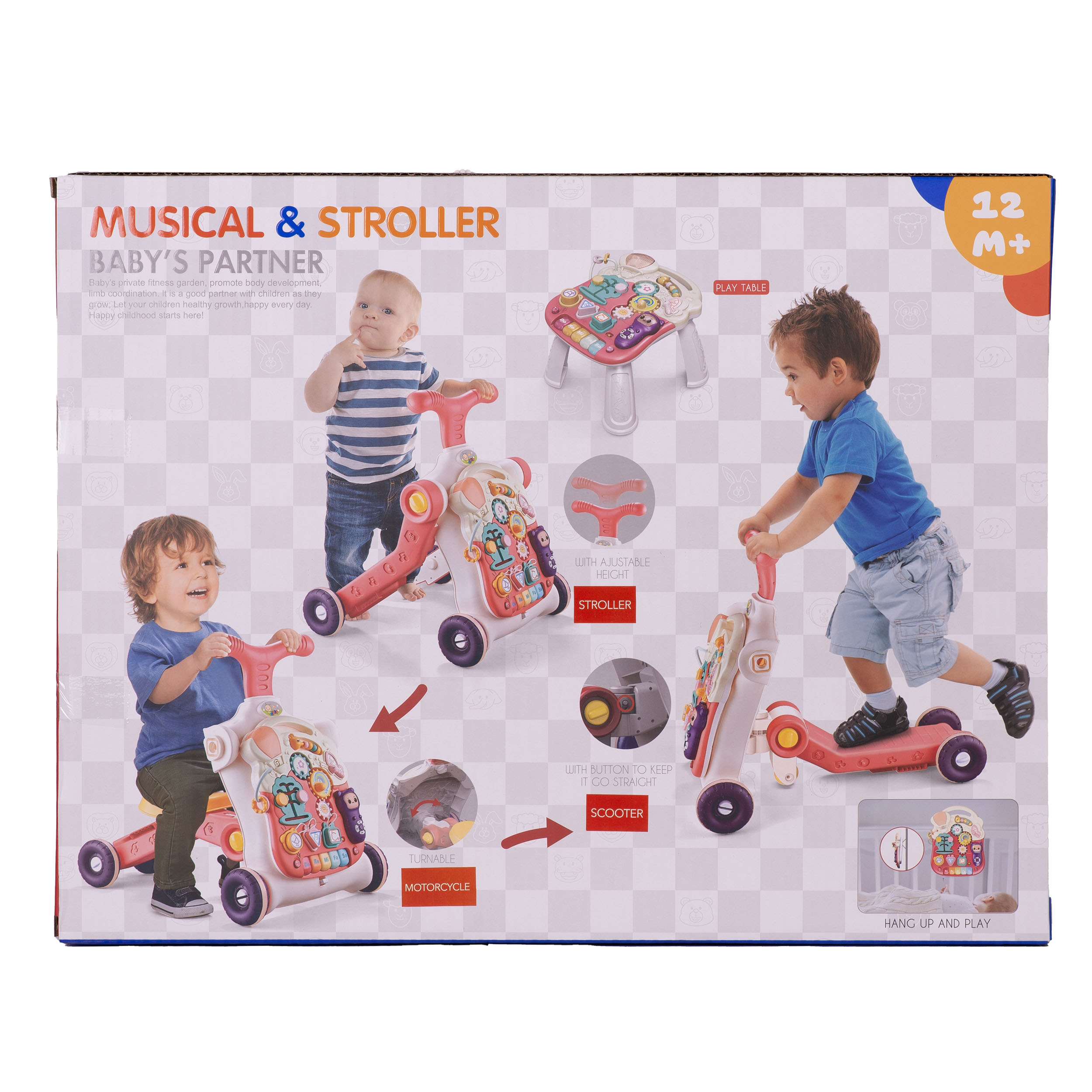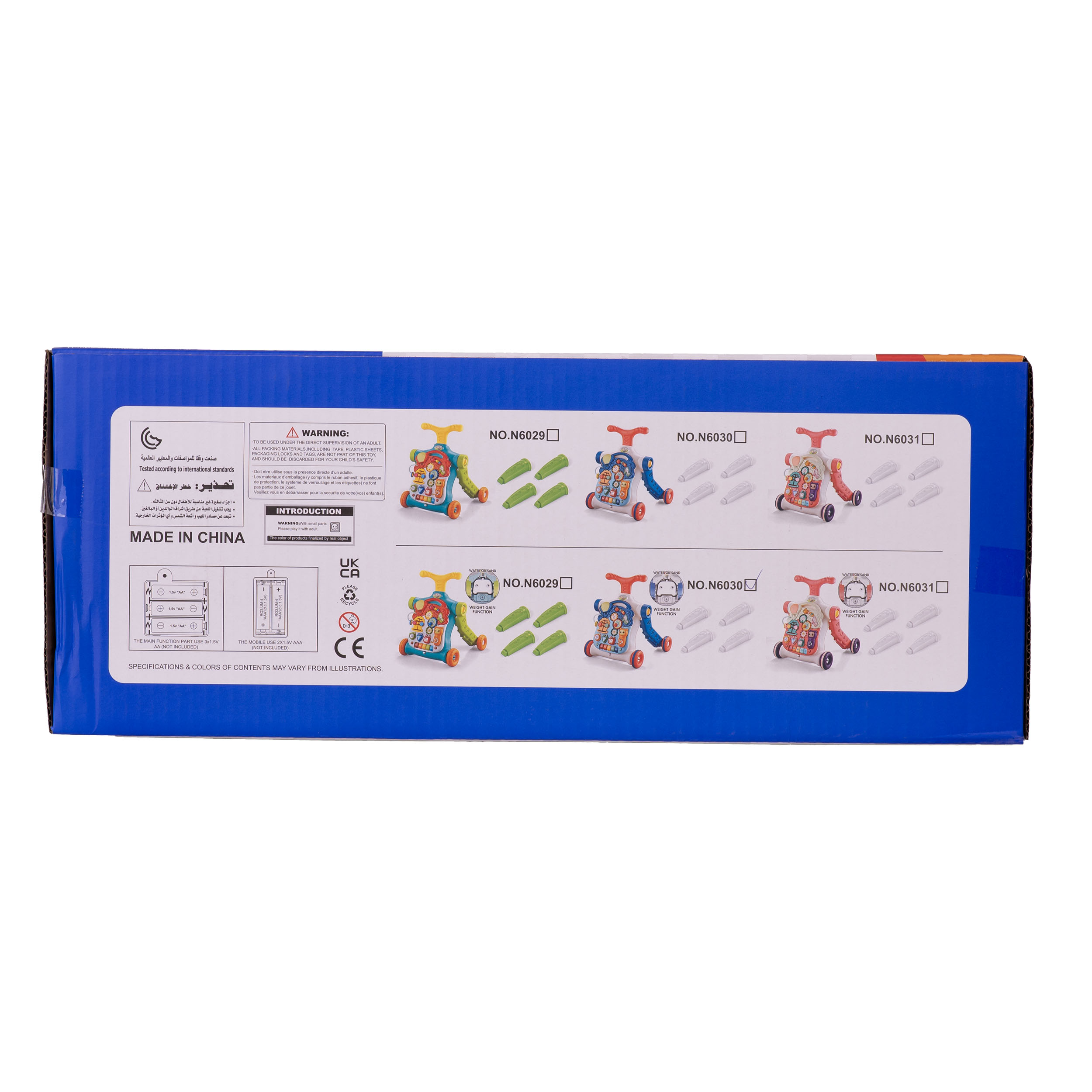 Oprócz nauki chodzenia, produkt idealnie nadaje się do nauki liczb, kolorów i kształtów. Wyjmowany panel (aby wyjąć panel, należy nacisnąć przycisk znajdujący się z dołu konstrukcji, aby zwolnić zaczep) może być używany jako tablica edukacyjna, a po dodaniu do niego nóżek w szybki sposób zmienia się w stolik edukacyjny.