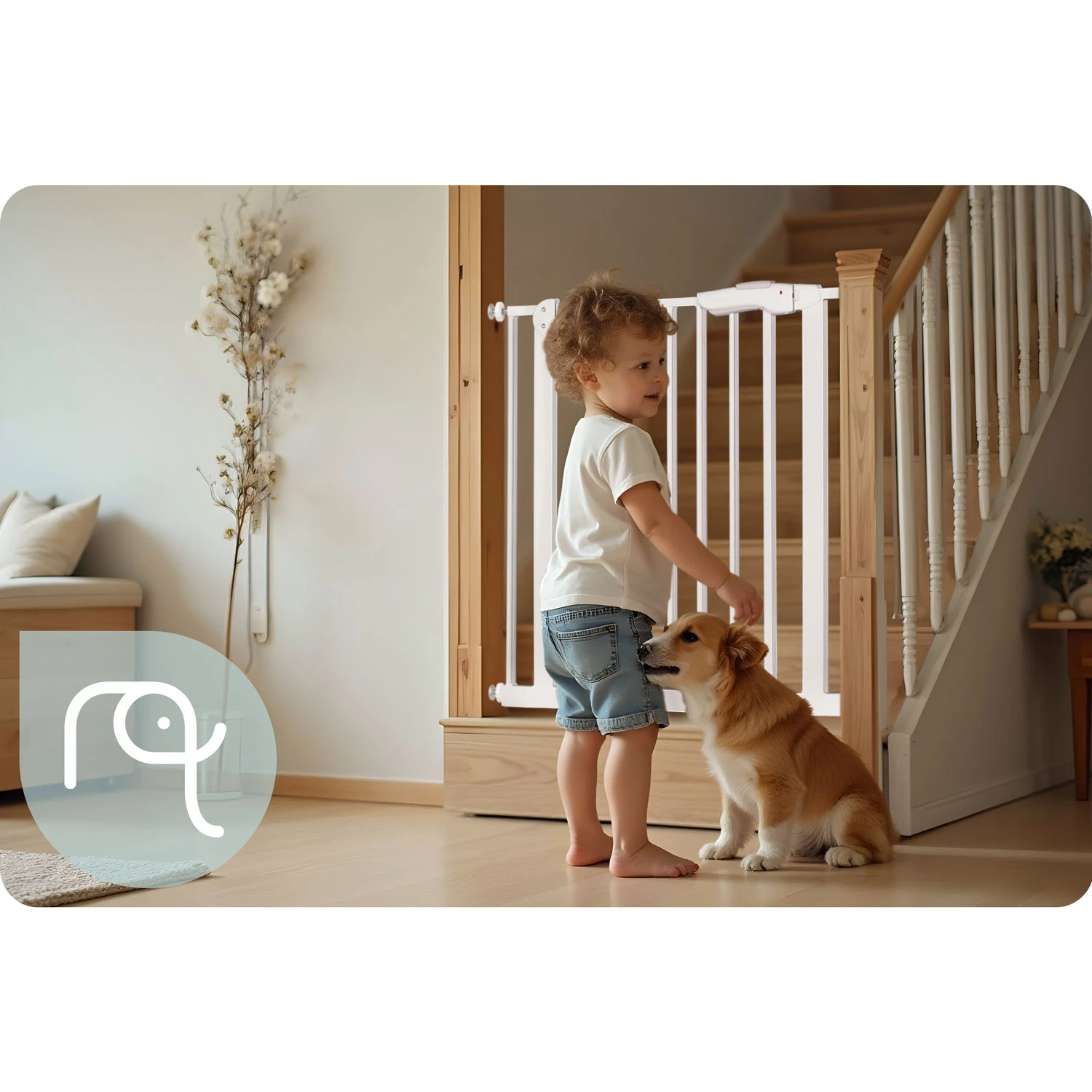 Barierka ochronna od Nukido jest mocowana rozporowo bez konieczności wiercenia otworów – nie zniszczysz ścian ani futryny.
