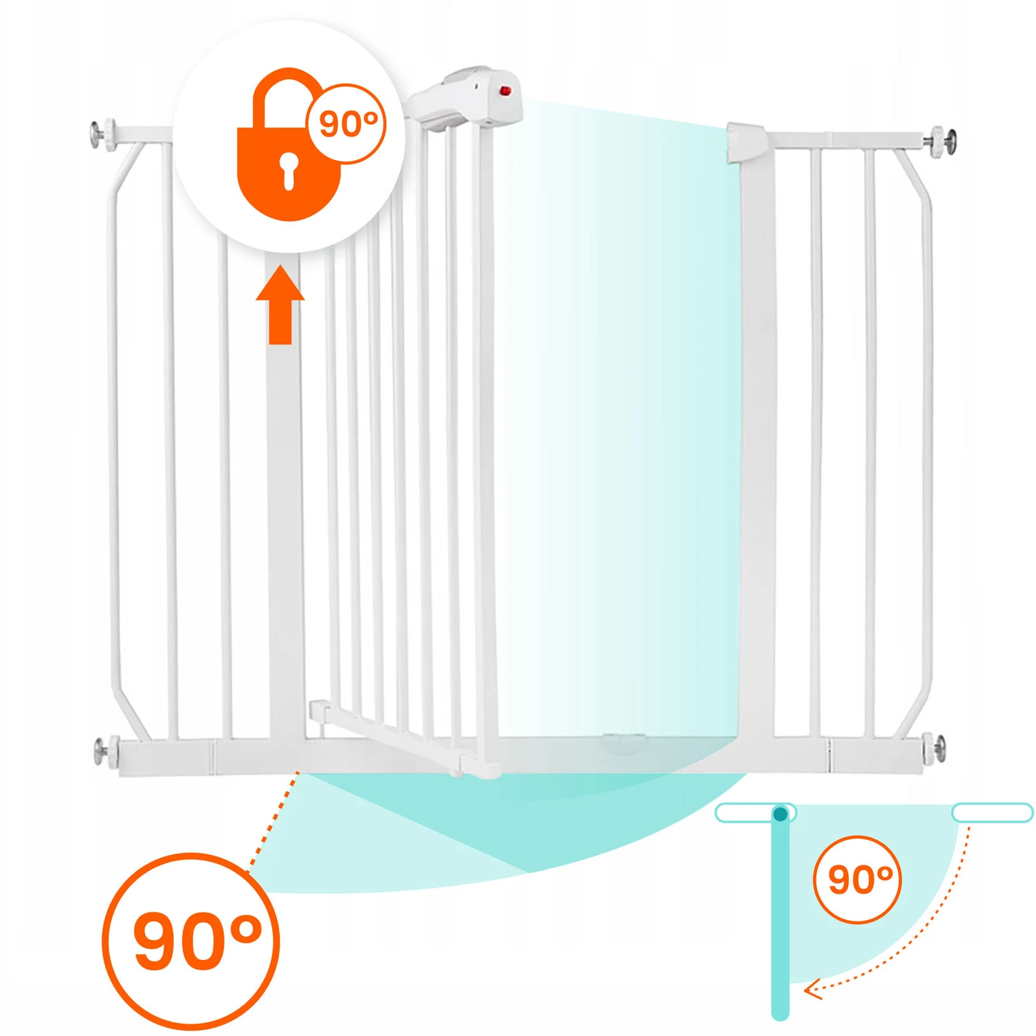 Regulowana szerokość pozwala na zamontowanie jej w drzwiach i przejściach od 75 do 105 cm.