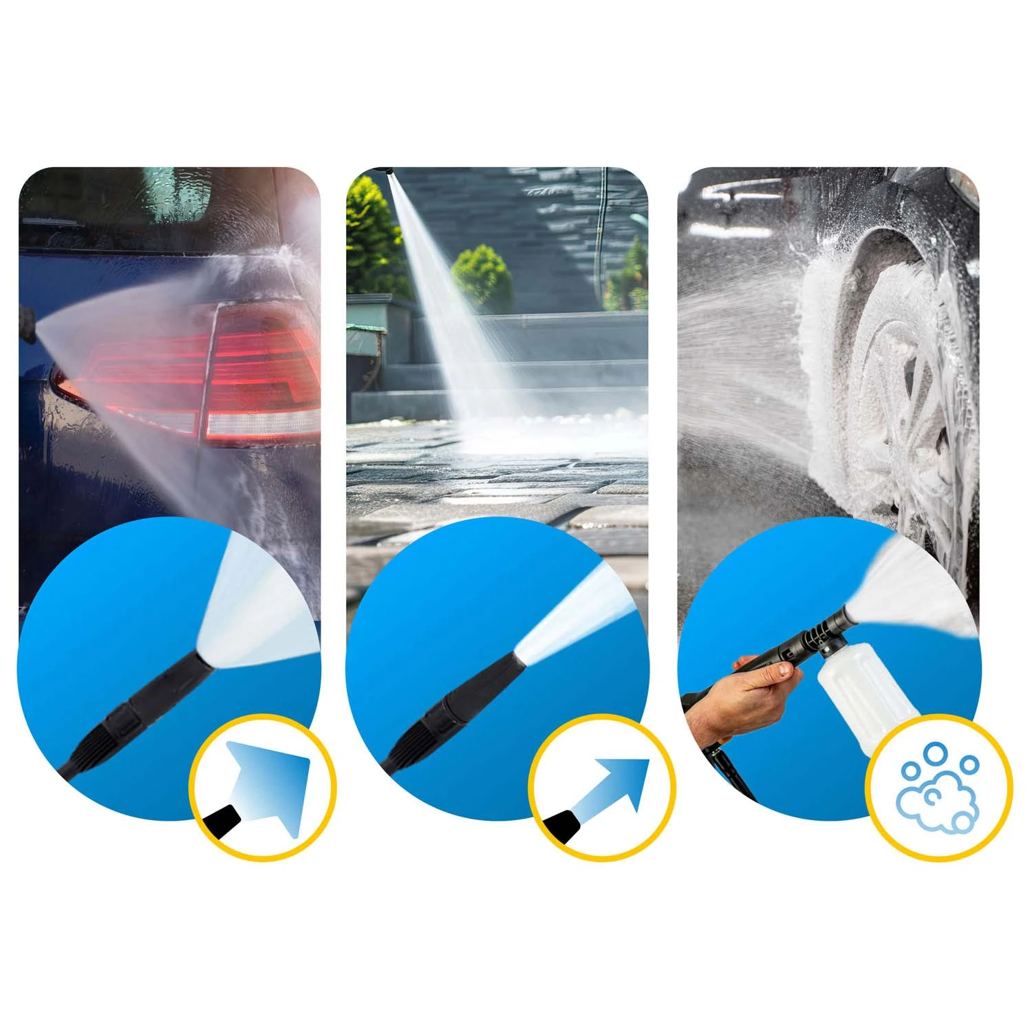 • Szybkie i wygodne: automatyczne dozowanie detergentu i możliwość szybkiego czyszczenia felg dzięki specjalnej szczotce sprawiają, że proces mycia staje się szybki, łatwy i wygodny, pozwalając Ci zaoszczędzić czas i wysiłek.
