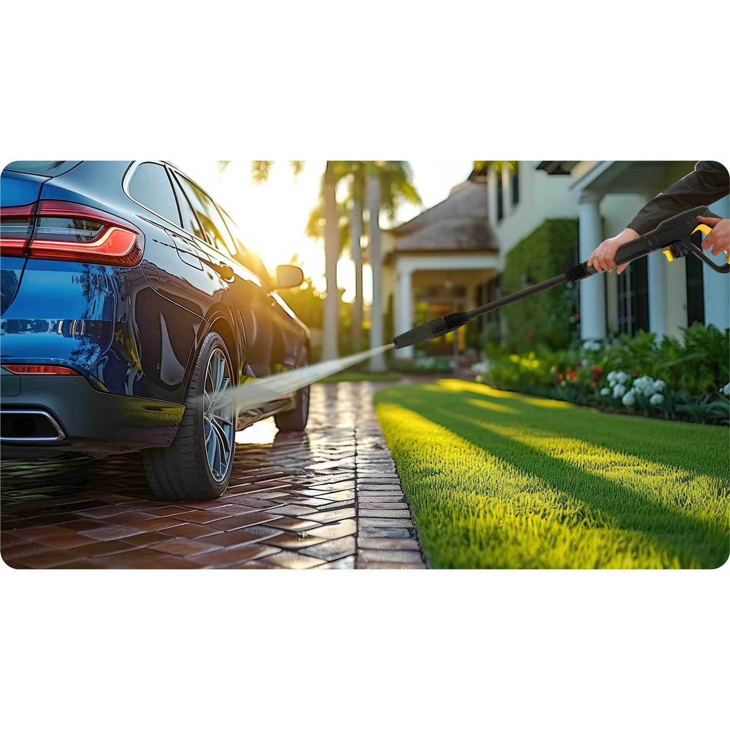 Nie tylko do samochodu! Ta myjka ciśnieniowa sprawdza się również doskonale przy czyszczeniu chodników, tarasów czy mebli ogrodowych, pomagając w utrzymaniu czystości na zewnątrz domu.