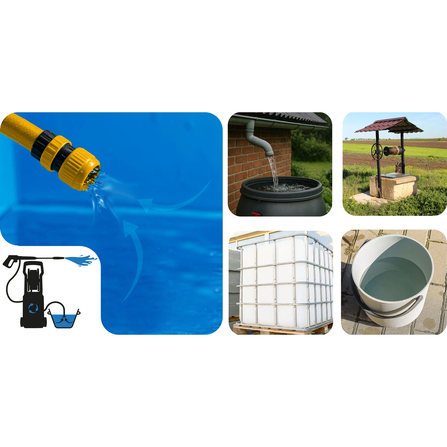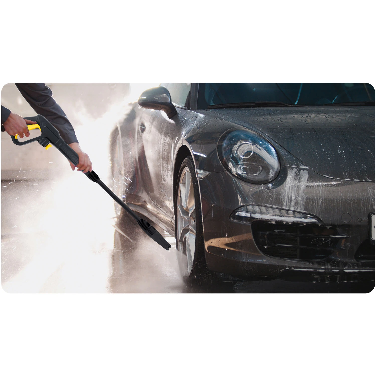 Brak dostępu do kranu nie stanowi już żadnej przeszkody. Myjka może pobierać wodę bezpośrednio z dowolnego zbiornika – wystarczy napełnić pojemnik i podłączyć urządzenie.
