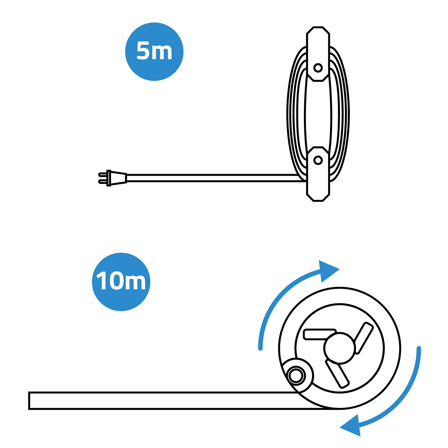 Uchwyt na kabel o długości 5 m — szybko i sprawne zwijanie po skończonej pracy i dodatkowa wygoda w przechowywaniu.