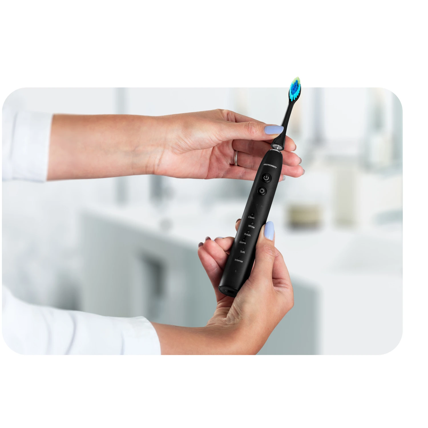 ✅ Dociera tam, gdzie inne szczoteczki nie sięgają – technologia soniczna dociera do najtrudniejszych przestrzeni.