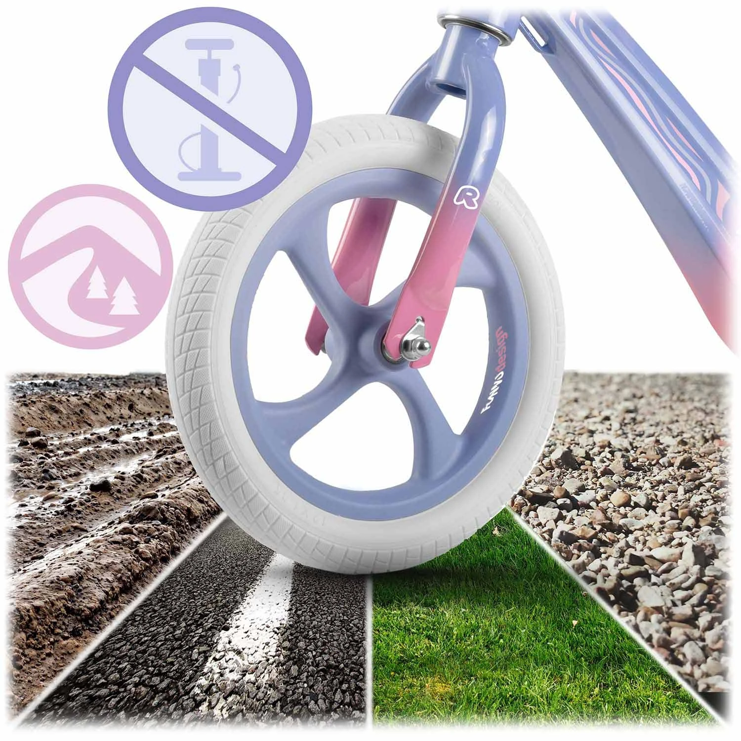 Bez względu na nawierzchnię — trawa, asfalt, piasek czy błoto — opony z pianki zapewniają bezawaryjną, stabilną i wygodną jazdę. Zero przebitych opon, zero przestojów! Pianka EVA łatwo się czyści, nie chłonie brudu i zachowuje dobry wygląd, nawet po intensywnym użytkowaniu.