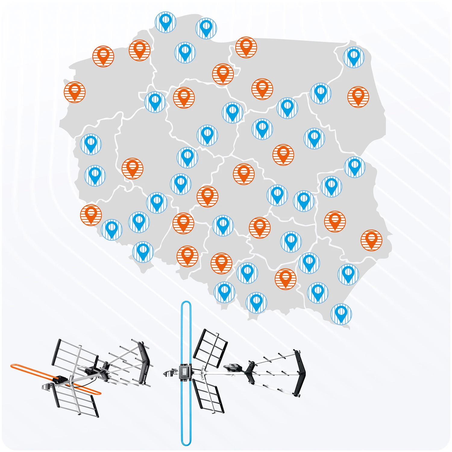 Dzięki tak dużemu zasięgowi bez problemu odbierzesz kanały nawet z odległych nadajników – także na terenach podmiejskich i wiejskich.