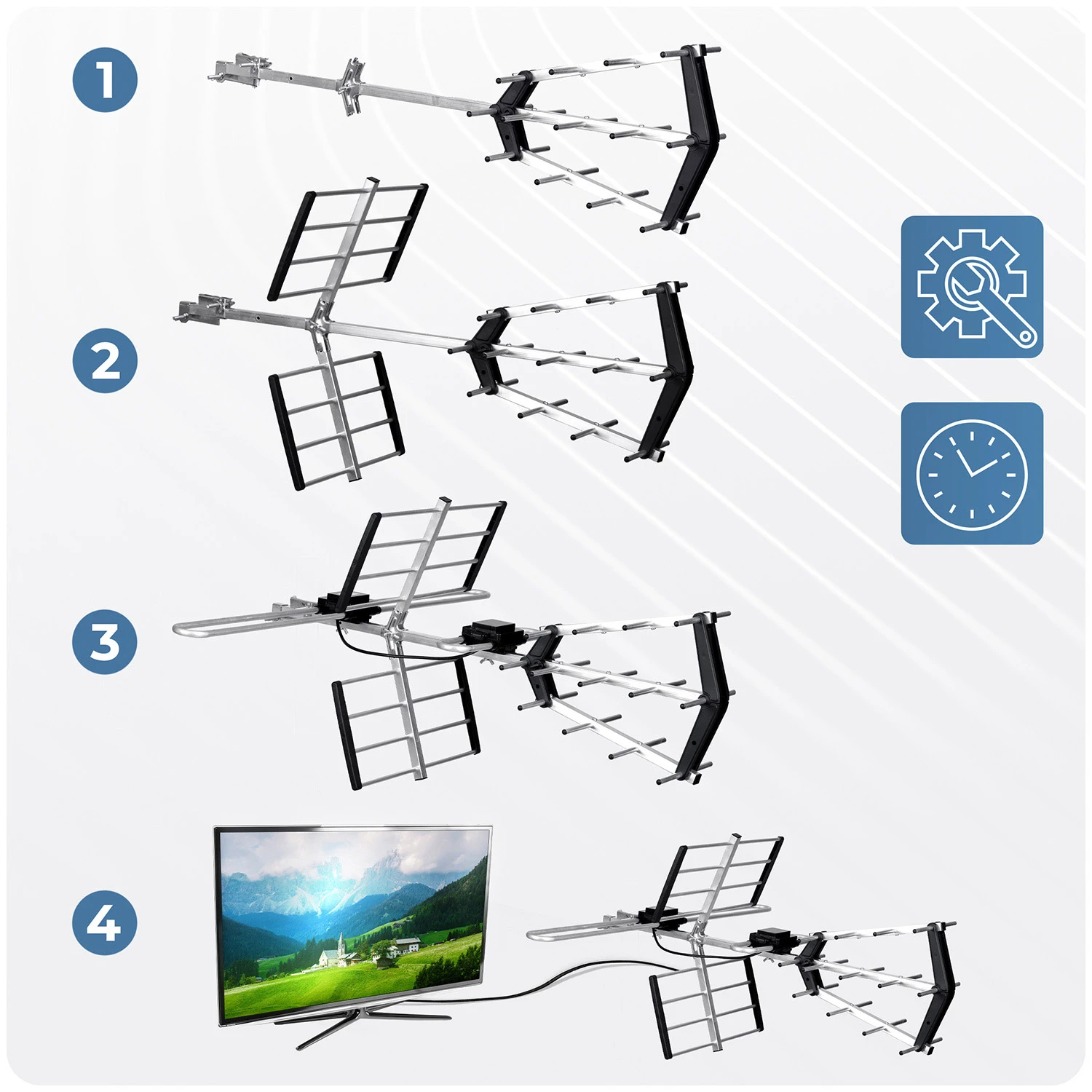 Antena wyposażona jest w inteligentny układ elektroniczny, który optymalizuje odbiór sygnału, automatycznie dostosowując się do warunków.