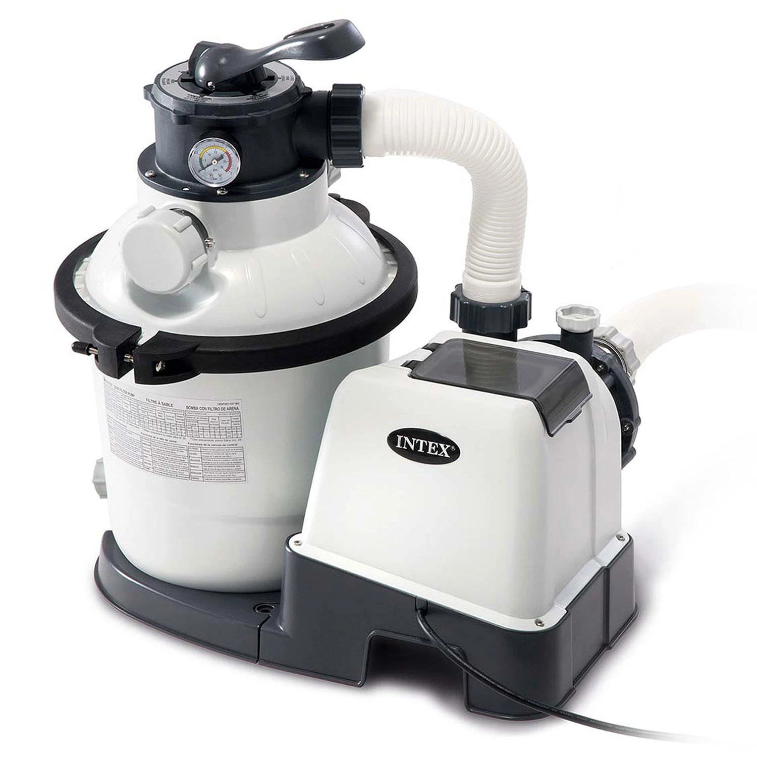 Pompa piaskowa Intex potrafi przepompować 5700 litrów na godzinę i pomieści 12 kg piasku.
