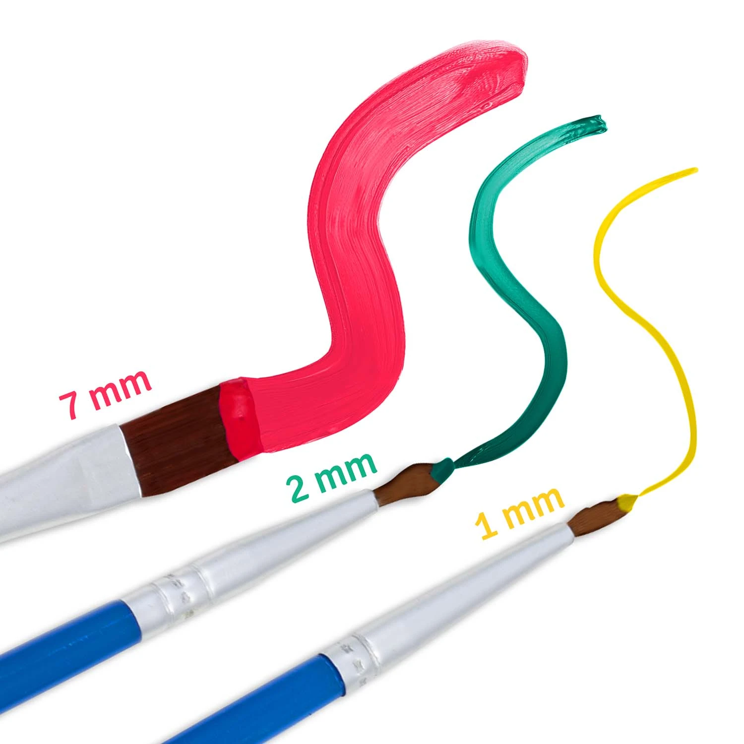 • Pędzel 7 mm: idealny do malowania dużych powierzchni i szybkiego pokrywania tła.