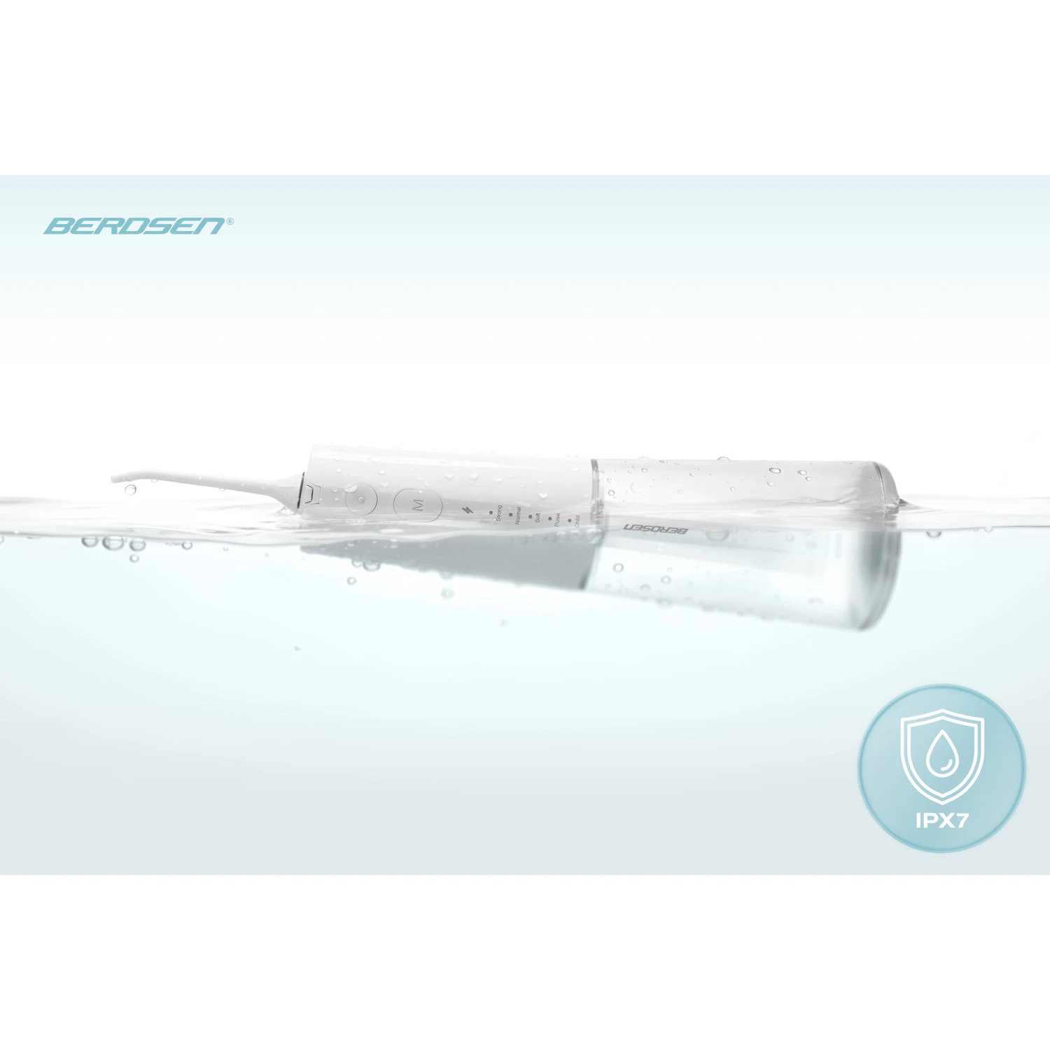 Irygator Berdsen to kompaktowe urządzenie, które zabierzesz ze sobą na wyjazd w delegację lub urlop. Mieszcząc w sobie duży 300 mililitrowy pojemnik na wodę, jest niewiele większy od szczoteczki elektrycznej.