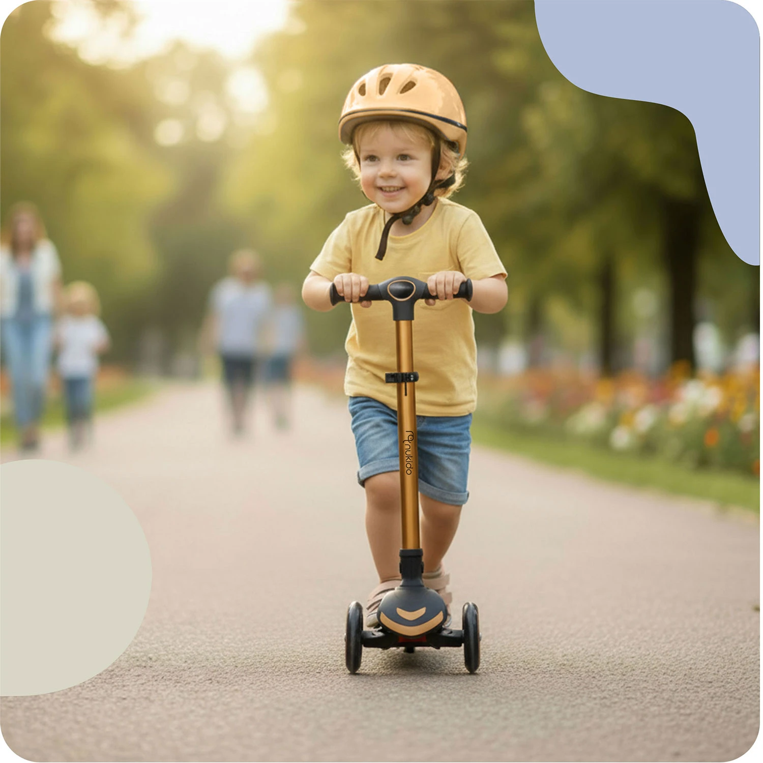 Wiele przeprowadzonych testów oraz informacje zwrotne od naszych zadowolonych małych klientów pokazuje, że to właśnie ta konstrukcja hulajnogi sprawdza się najlepiej i jest najbezpieczniejsza.
