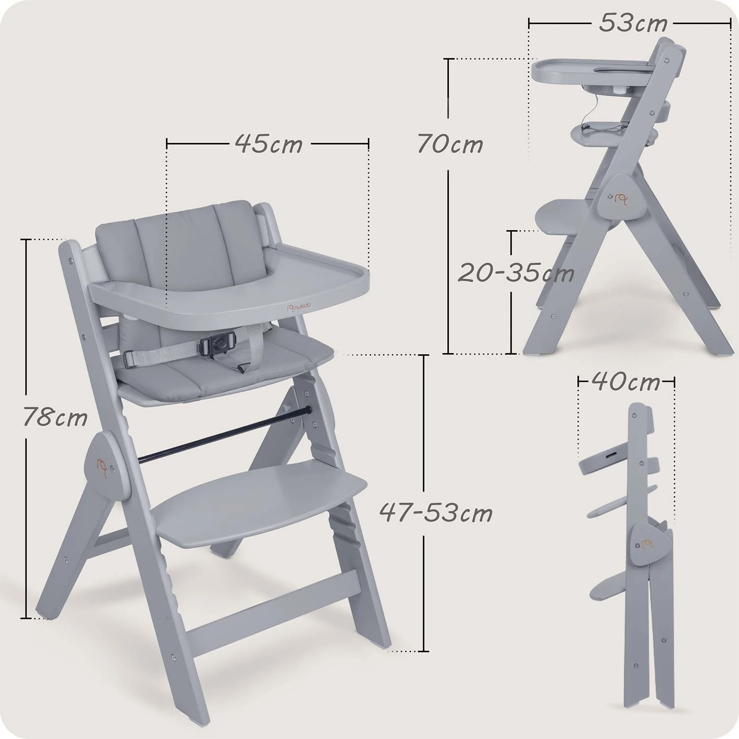 Dzięki specjalnemu zestawowi z pasami bezpieczeństwa i wygodną poduszką staje się bezpiecznym i komfortowym pierwszym krzesełkiem dla Twojego maluszka. Idealne do pierwszych posiłków i wspólnych chwil przy stole.