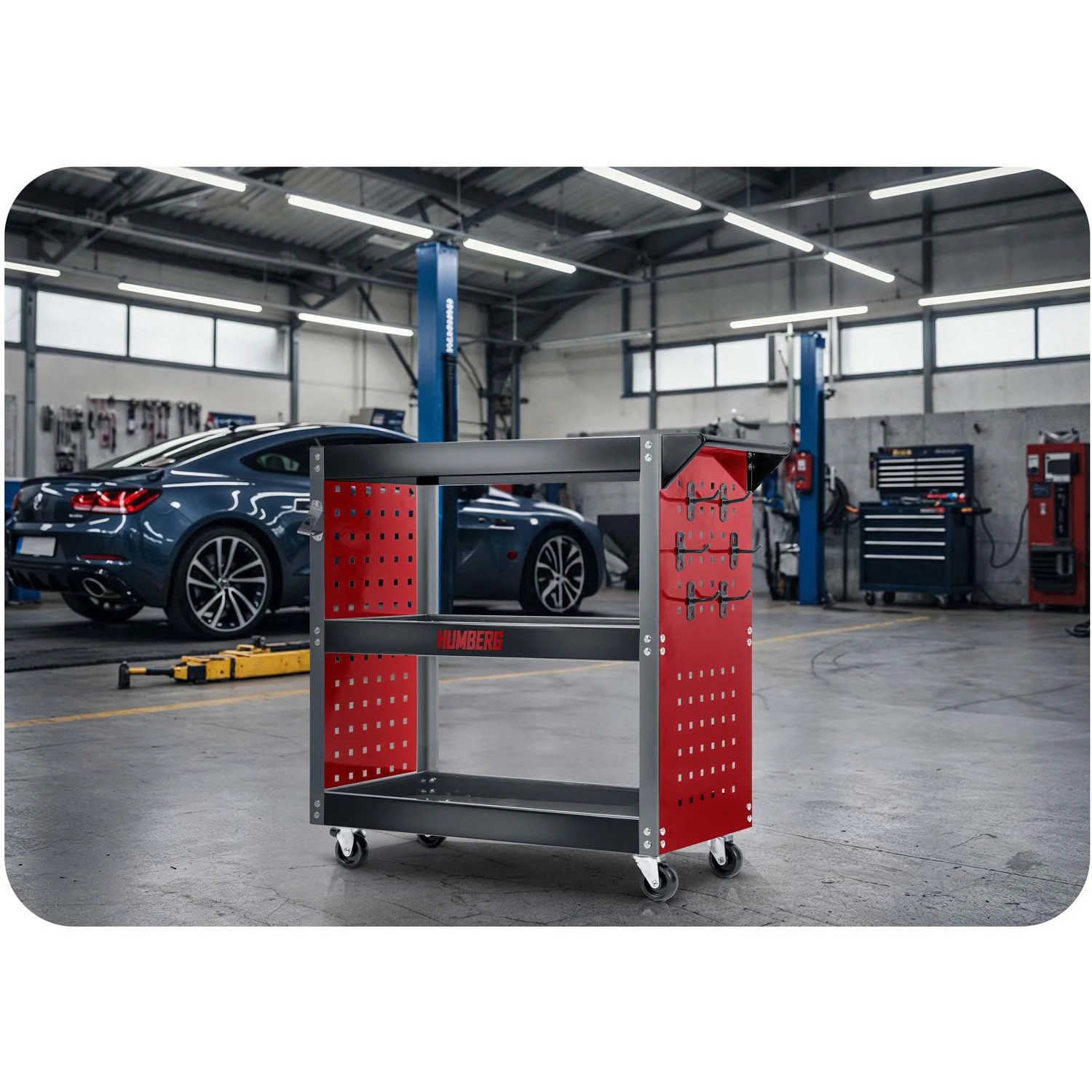 Model HM-515 to wózek zaprojektowany specjalnie do użytku warsztatowego – idealny do przechowywania i transportu narzędzi, części oraz akcesoriów. Sprawdzi się zarówno w profesjonalnym serwisie, jak i w przydomowym garażu.