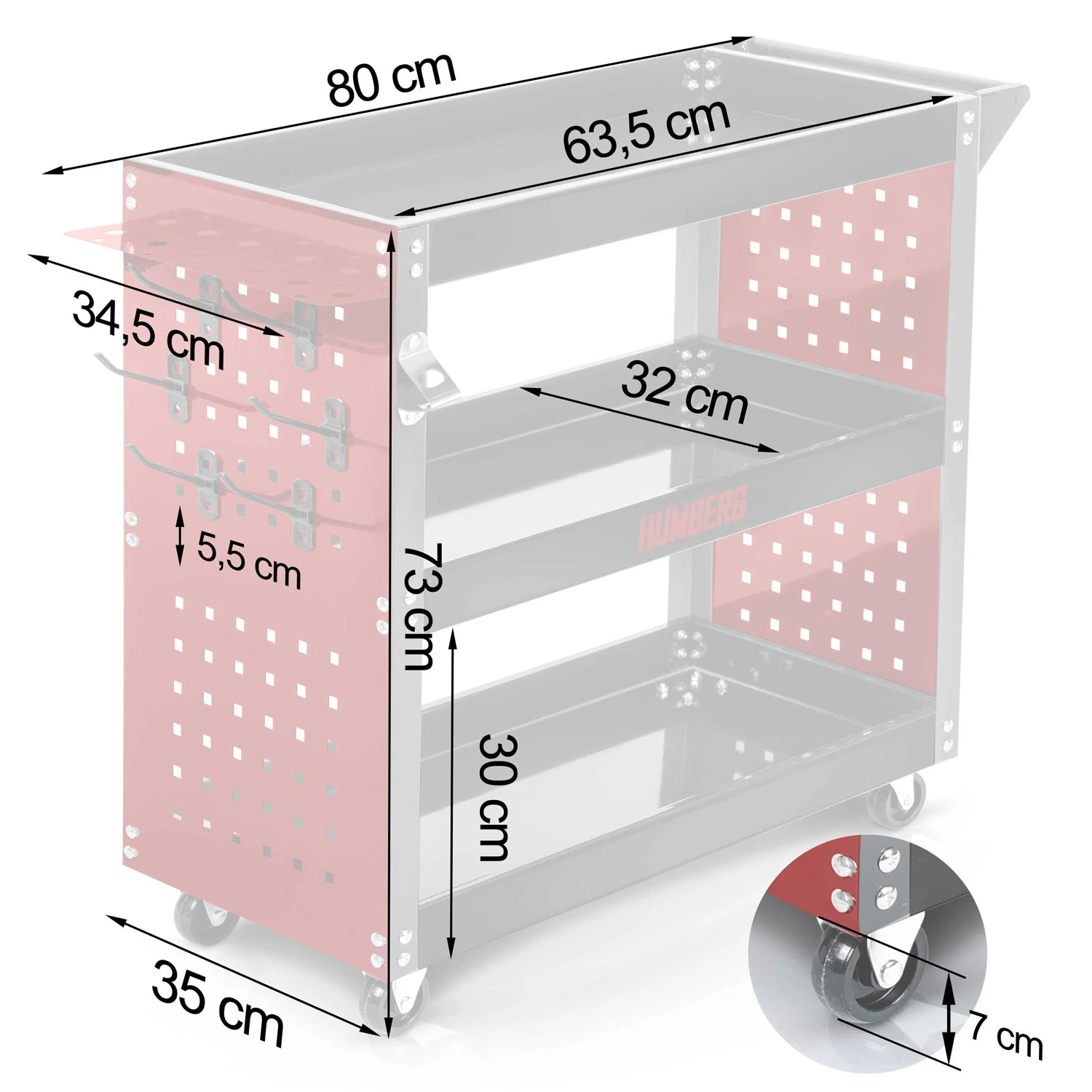 Wózek jest bardzo poręczny i został wyposażony w profilowaną rączkę. Zajmuje niewiele miejsca podczas przechowywania. Dodatkowo wózek posiada praktyczne uchwyty na narzędzia, dzięki któremu najczęściej używane sprzęty zawsze masz pod ręką.