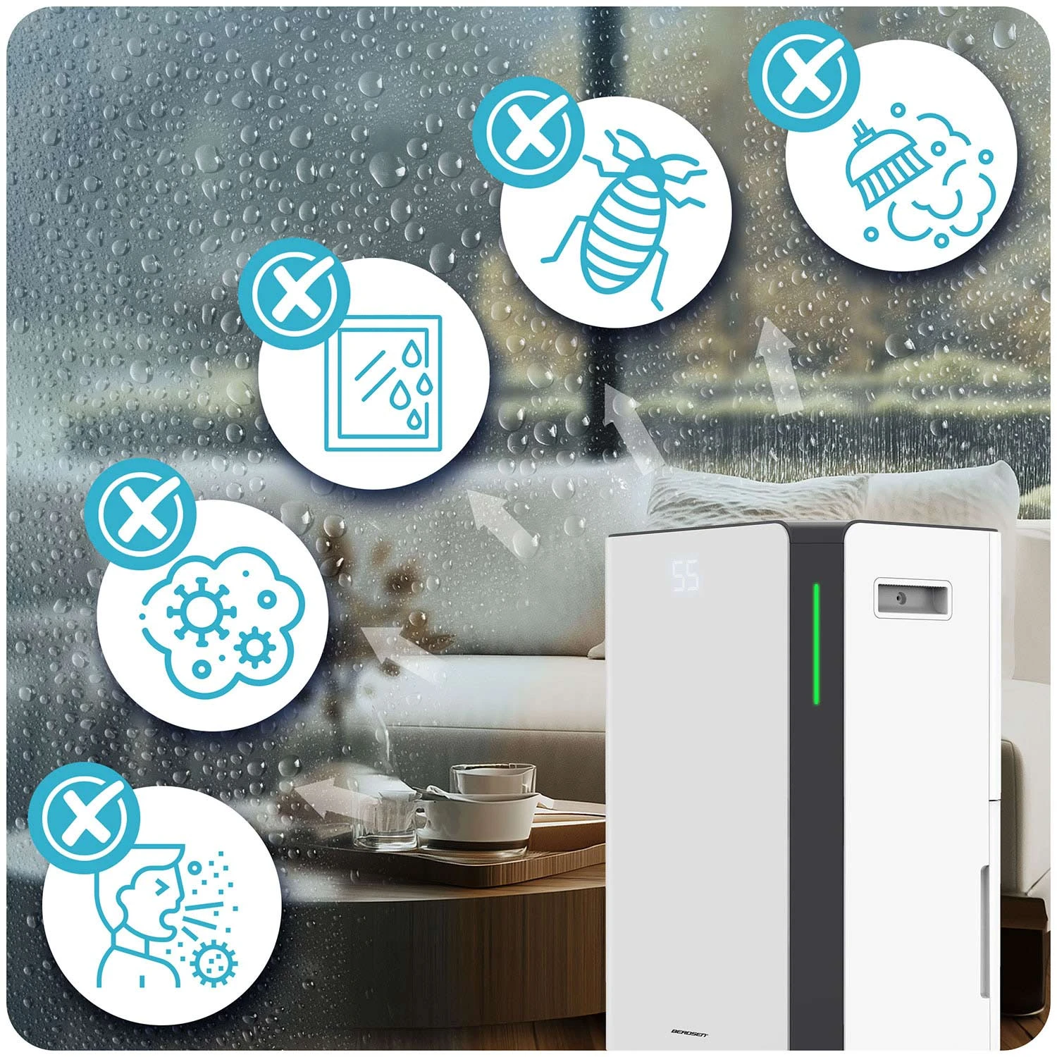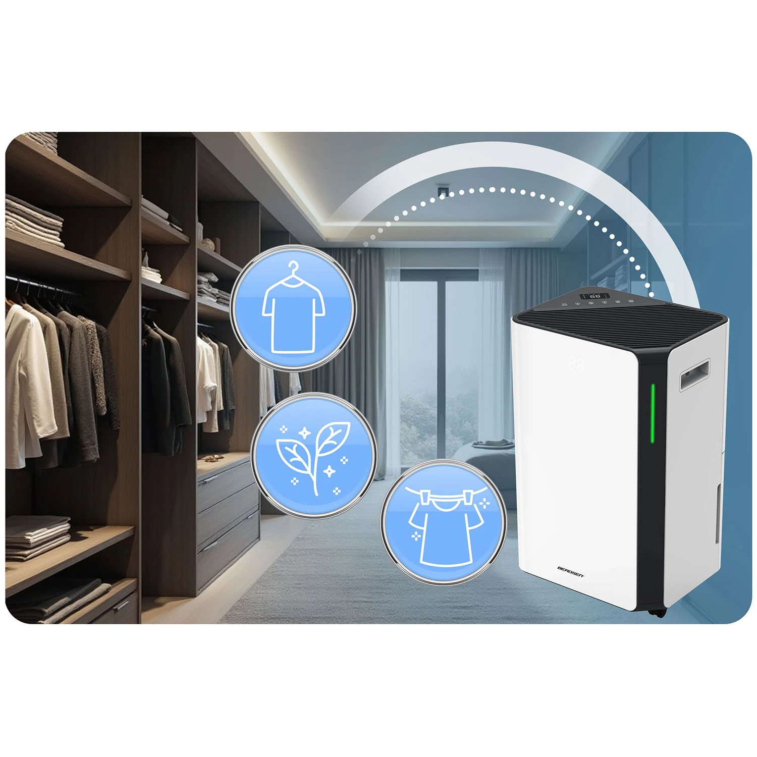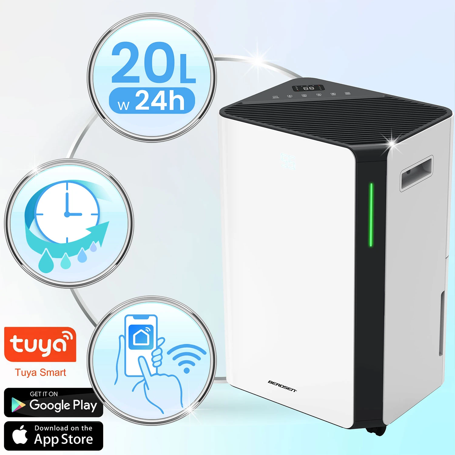 ✅ Osuszacz powietrza BERDSEN 20 l/24 h | WiFi | 4,5 l zbiornik | Cichy | 30 m²