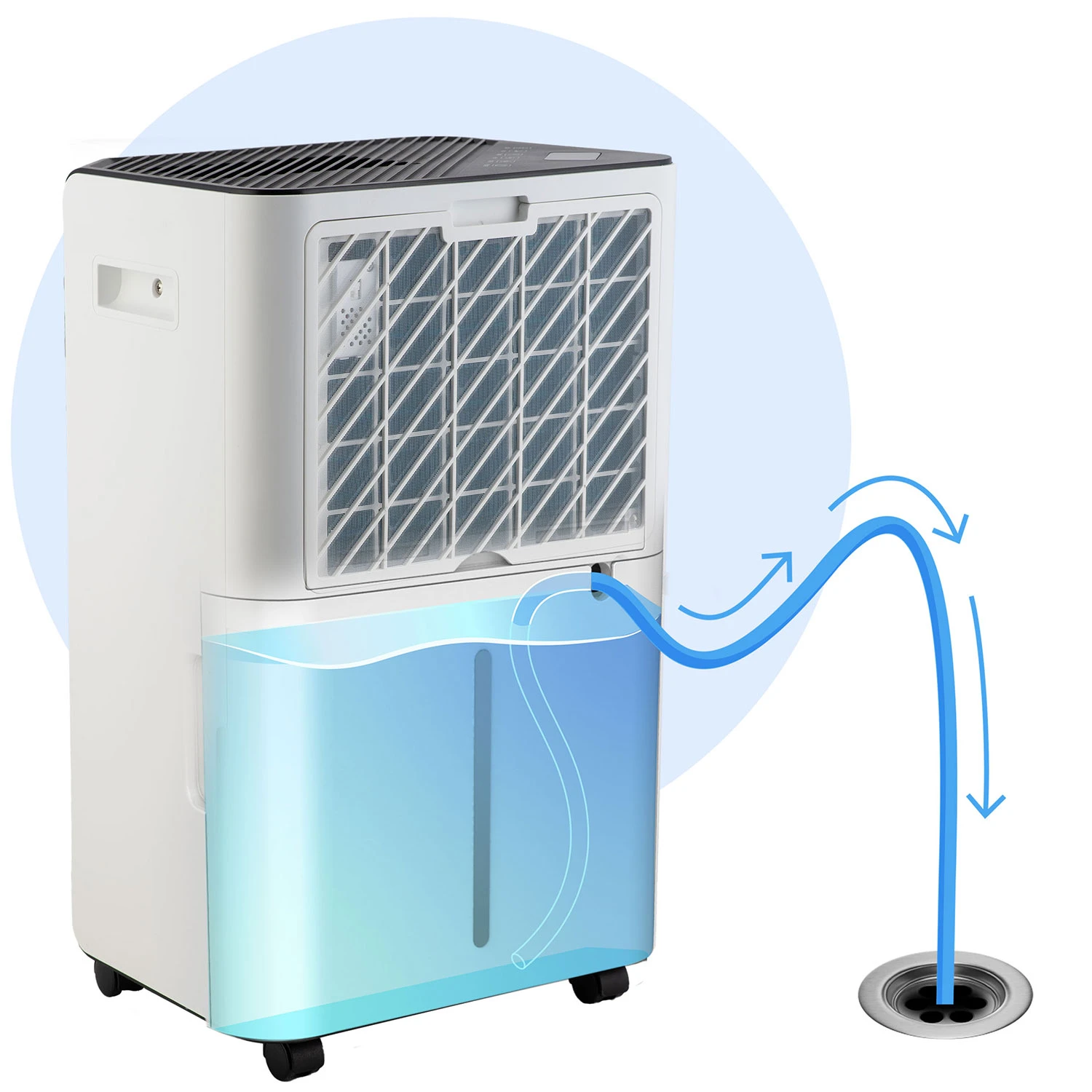 Wybierz tryb stałego odpływu – bez opróżniania zbiornika, bez przerw w pracy. Idealne rozwiązanie na długie, bezobsługowe osuszanie.