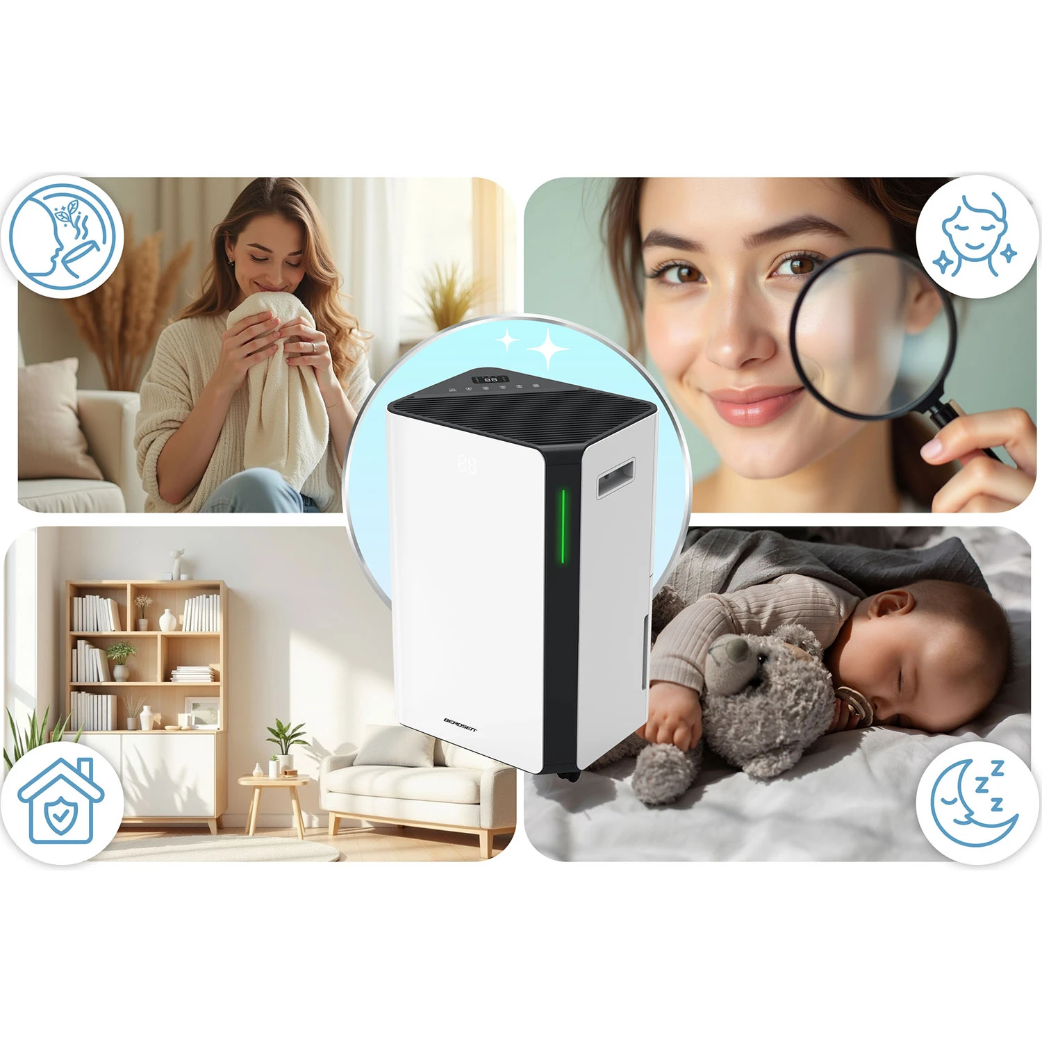Wyjątkowo skuteczny nawet przy RH 80% – idealny do mieszkań, biur, domków letniskowych.