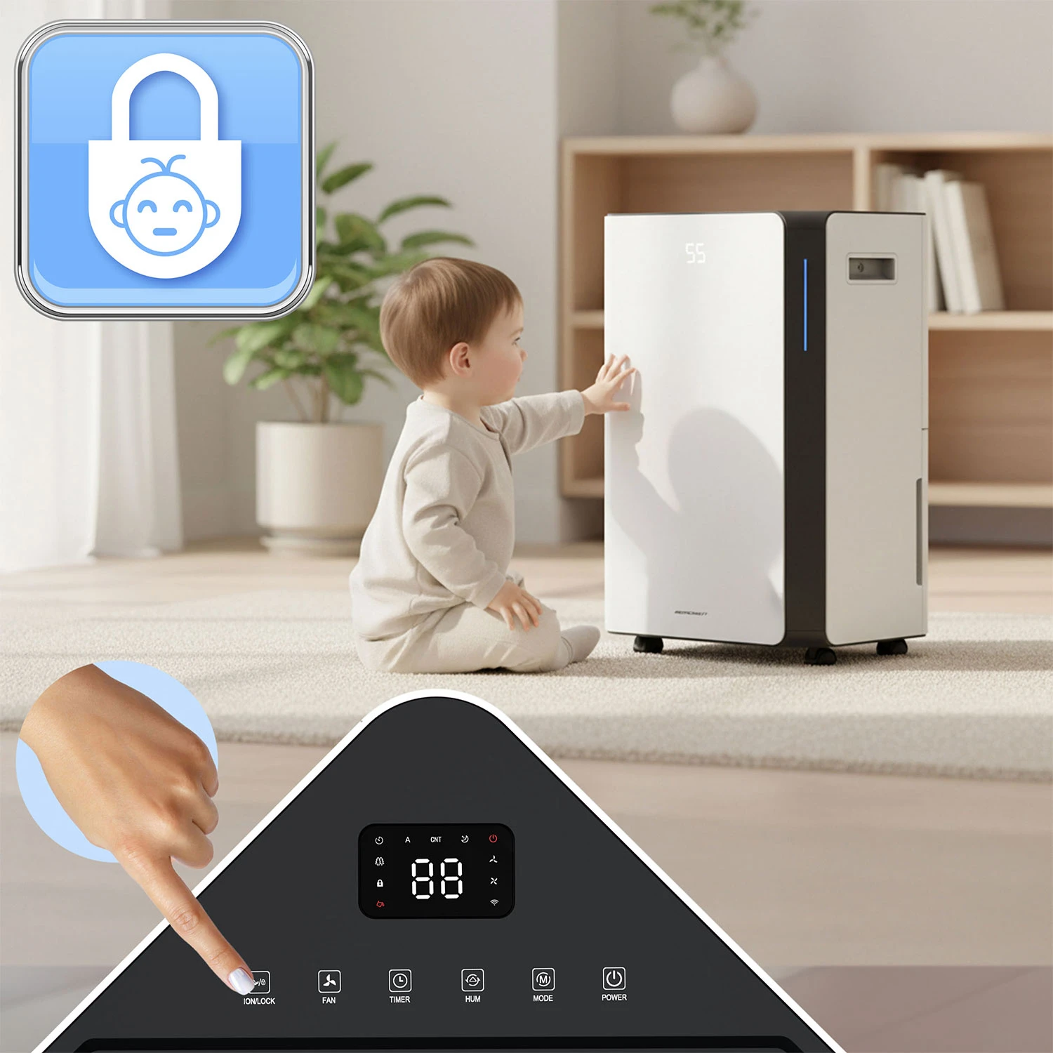 4️⃣ Child Lock – blokada ustawień przed dziećmi.