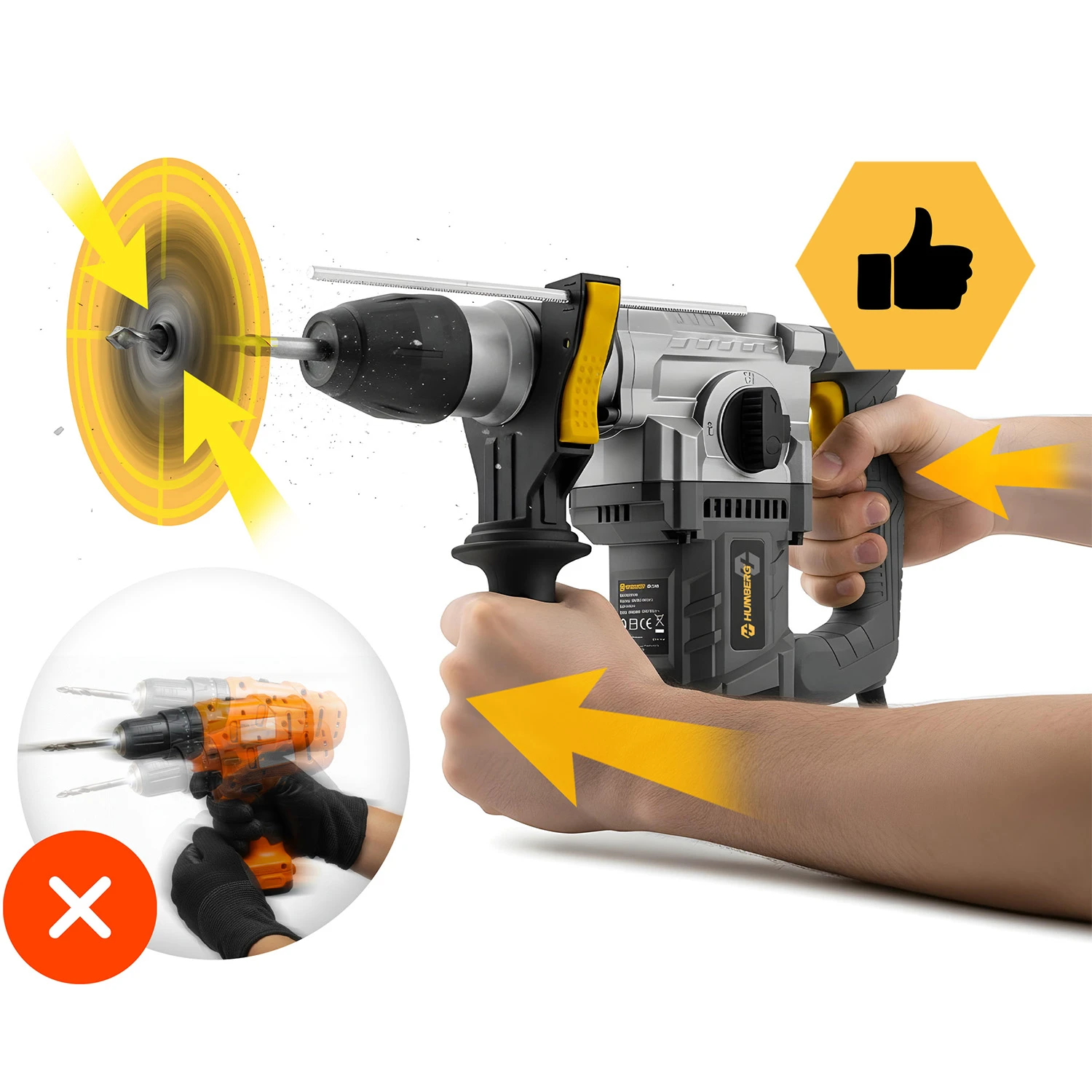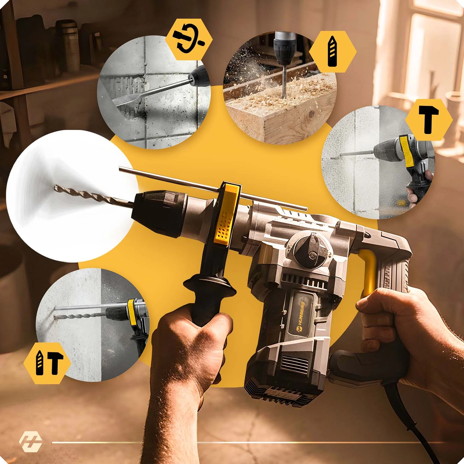 Ta młotowiertarka z ogranicznikiem głębokości to idealne narzędzie do precyzyjnego wiercenia w betonie, murze, drewnie i metalu. Ogranicznik pozwala ustawić dokładną głębokość wiercenia, co sprawia, że praca jest szybka, dokładna i powtarzalna – niezależnie od rodzaju zadania.