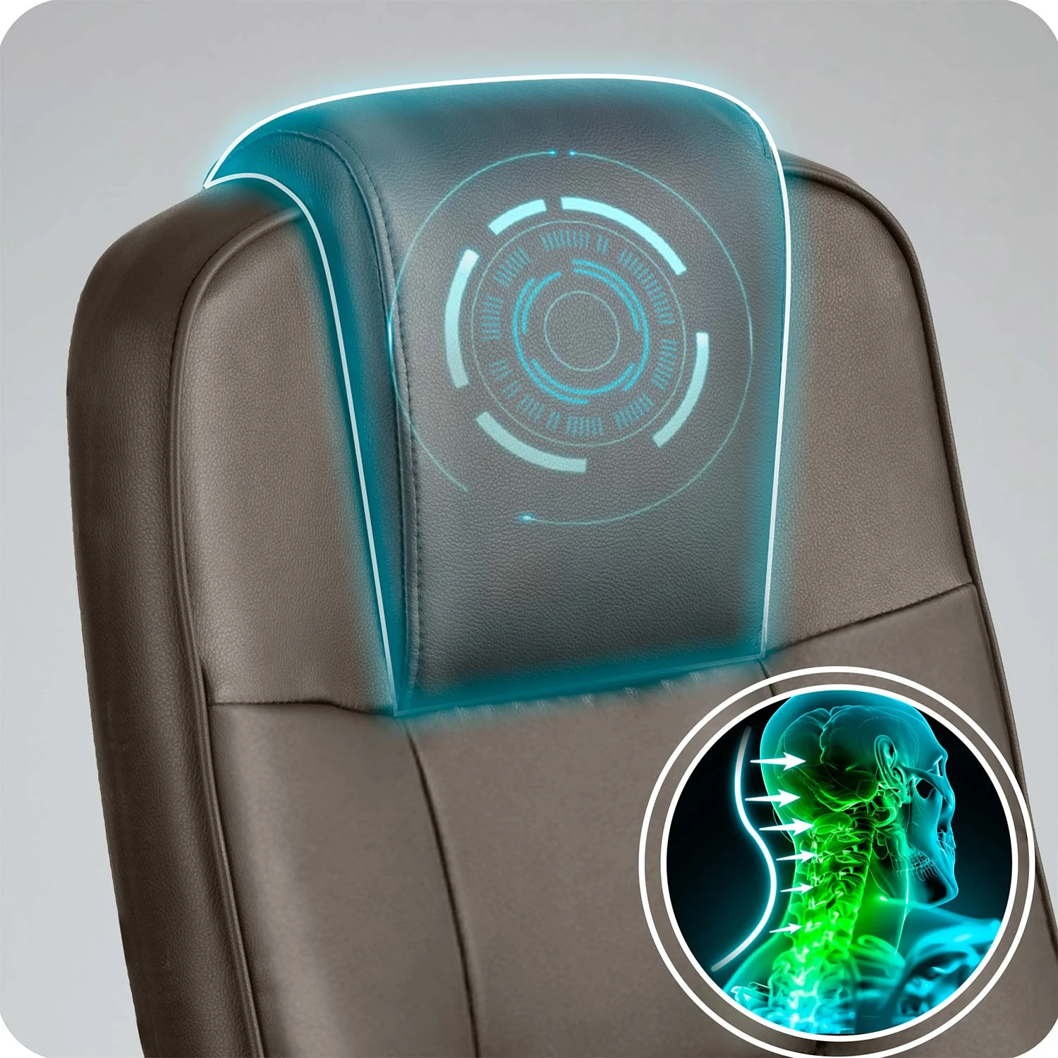 Wyprofilowana część lędźwiowa pomaga utrzymać ergonomiczną bezpieczną postawę. Wyprofilowany zagłówek równo rozkłada nacisk, odciążając mięśnie i zapobiegając bólom odcinka szyjnego.