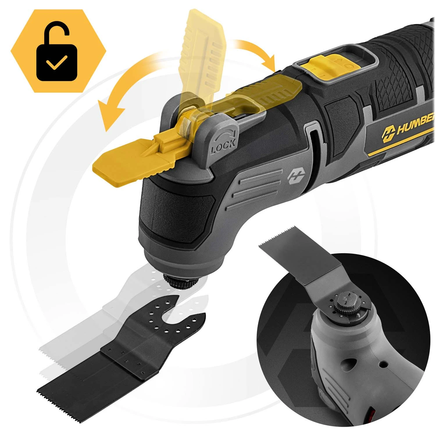 Zmieniaj końcówki w kilka sekund – bez użycia narzędzi! Dzięki funkcji Quick Lock multiszlifierka Humberg zapewnia błyskawiczną i pewną wymianę akcesoriów. Więcej pracy, mniej przestojów!