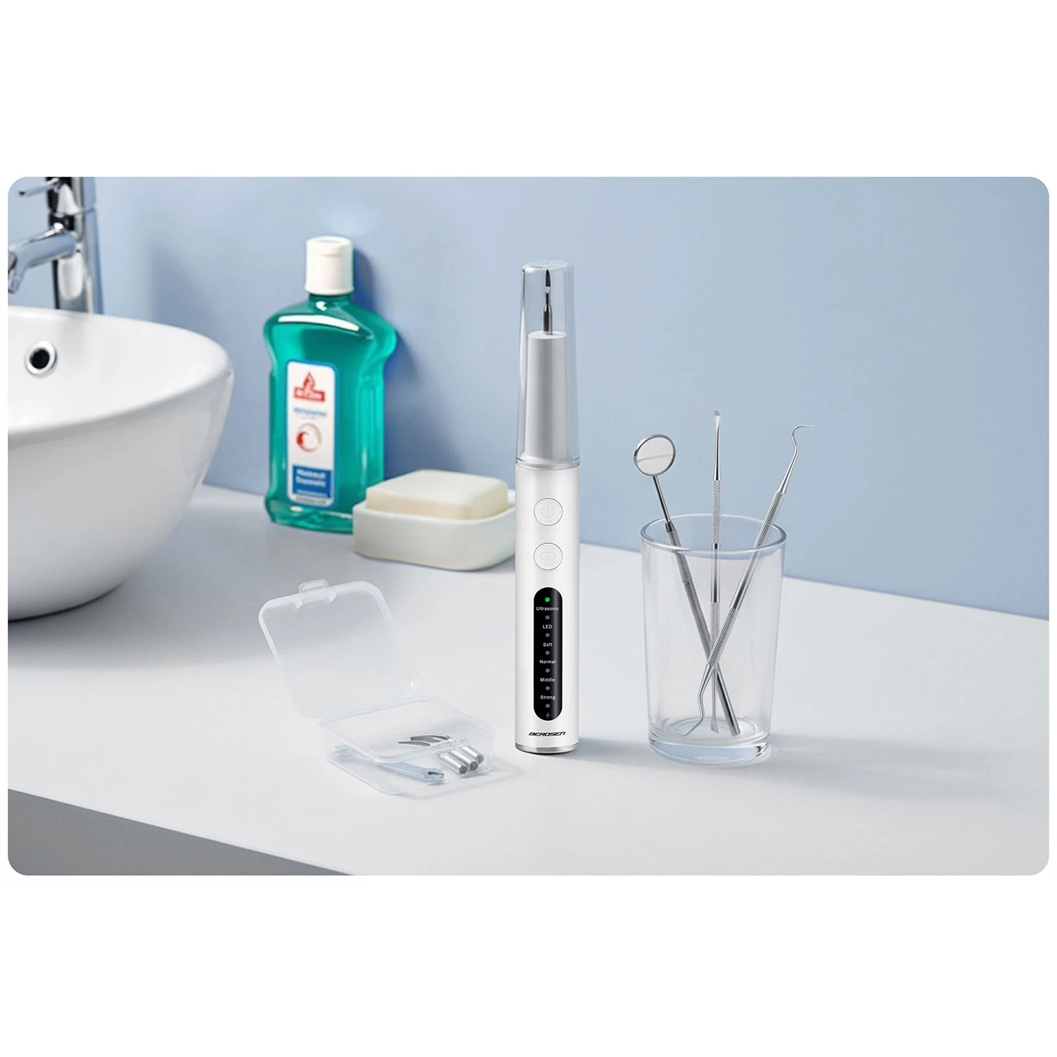 ✅ Bogaty i kompletny zestaw narzędzi dentystycznych: lusterko, skrobak dentystyczny, sonda oraz kluczyk do zmieniania głowic. Idealny dla osoób początkujących. Kompleksowe czyszczenie w domowym zaciszu.