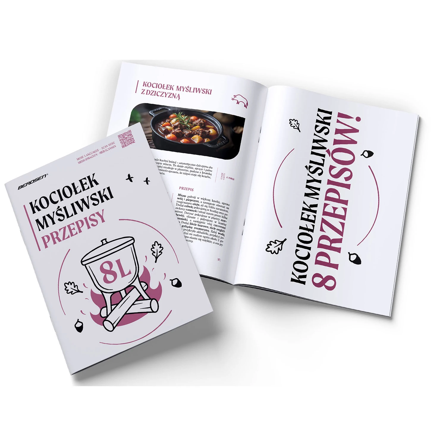 W zestawie czeka książka z 8 konkretnymi przepisami, stworzona z myślą o kociołku.