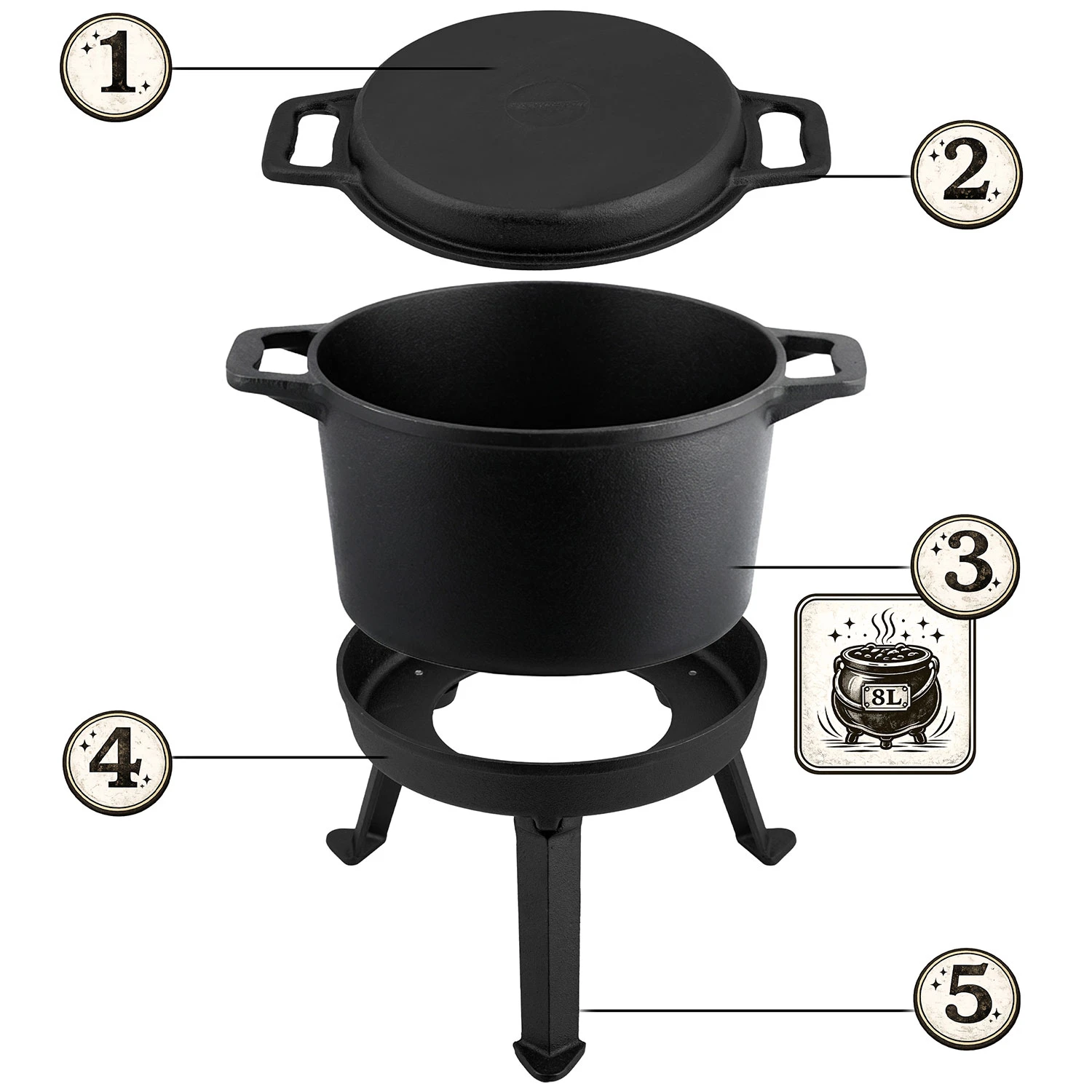 Ten kociołek to kawał żeliwa – ciężki, stabilny i nie do zdarcia. Wrzucasz składniki, zakrywasz pokrywą i robisz jedzenie, które ma charakter.