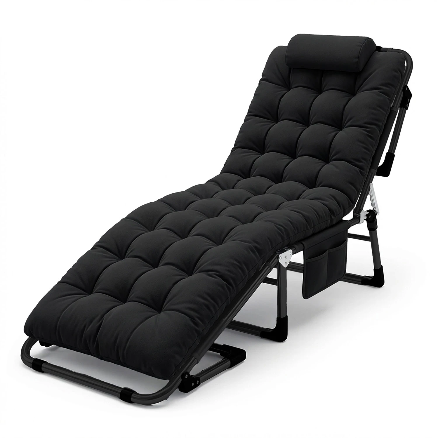 Uniwersalny, czarny kolor sprawia, że składane łóżko-leżak świetnie pasuje zarówno do ogrodu, jak i na działkę czy biwak.