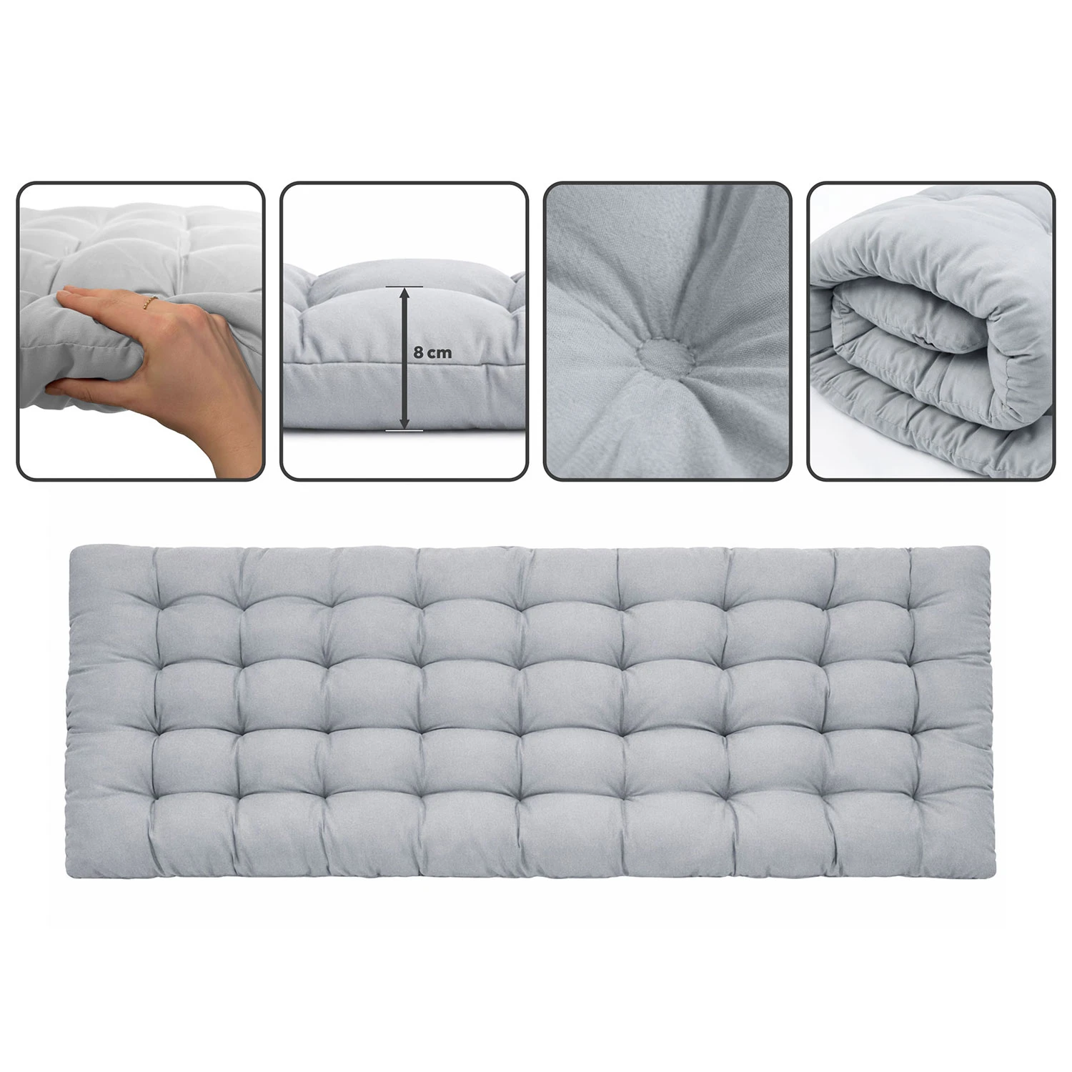 Miękki, bardzo wygodny i solidnie wypełniony – zapewnia wysoki komfort zarówno podczas odpoczynku w ogrodzie, jak i przy spaniu. Grube, solidne wypełnienie sprawia, że materac jest przyjemnie puszysty i długo zachowuje swój kształt.