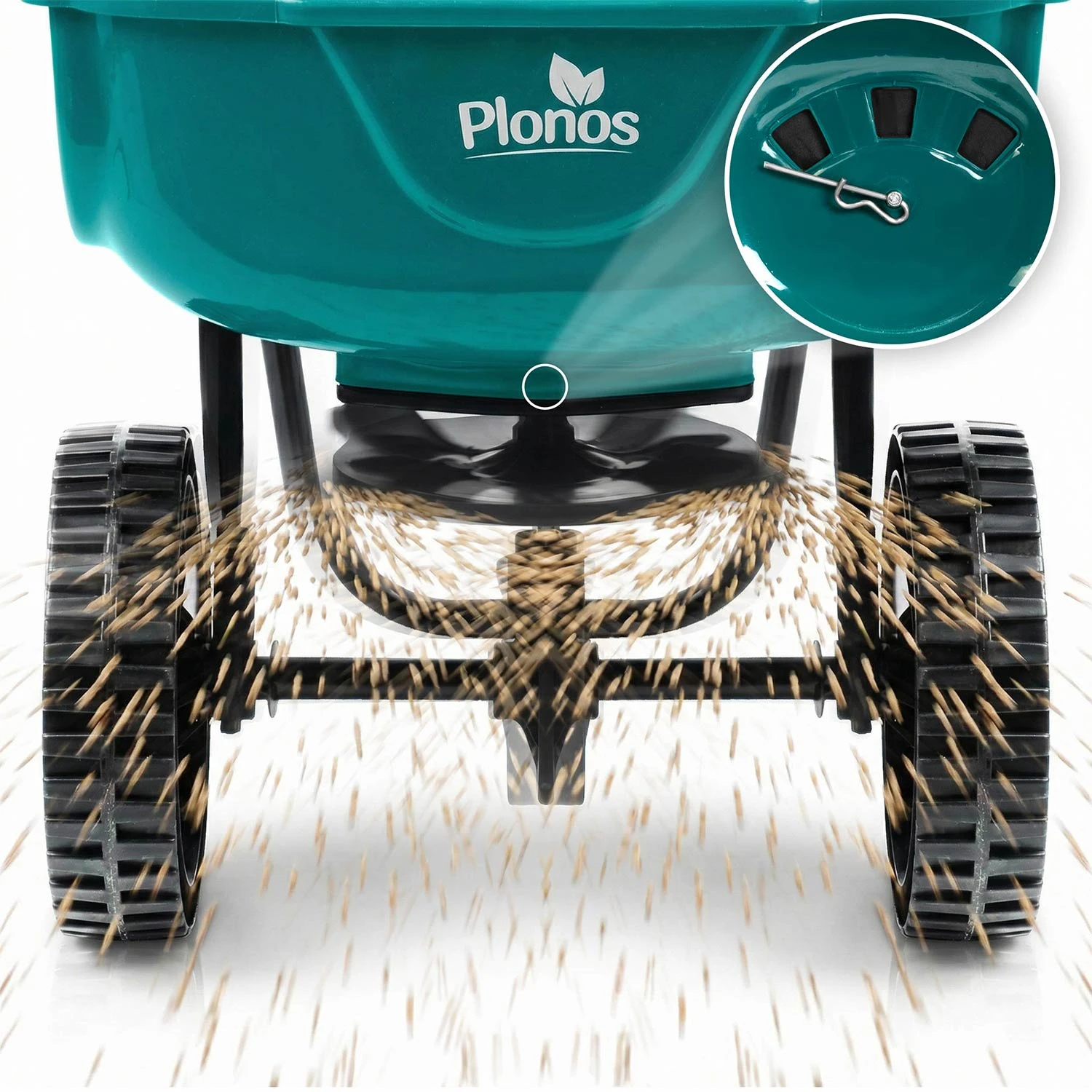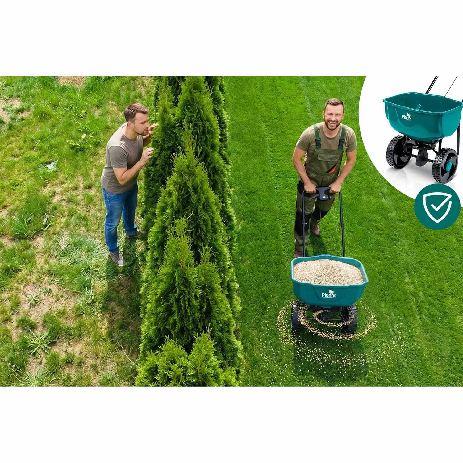 Siewnik Plonos 27 l zapewnia szeroki zakres aplikacji, aż do 300 cm, umożliwiając szybkie pokrycie większych powierzchni.
