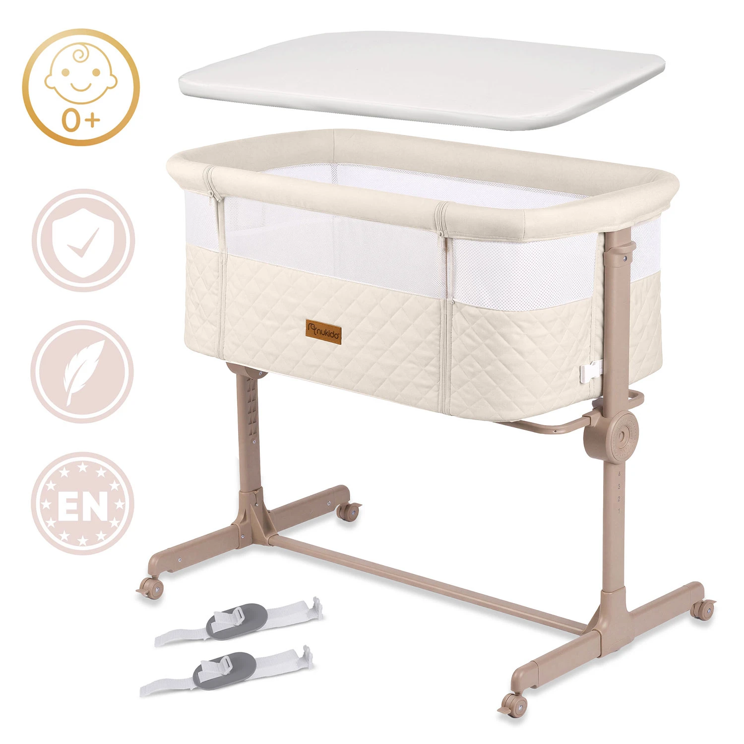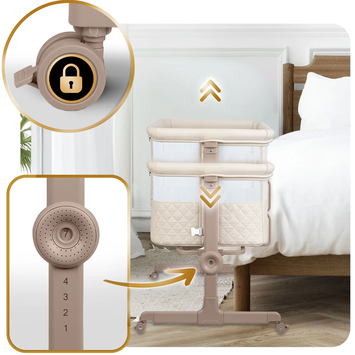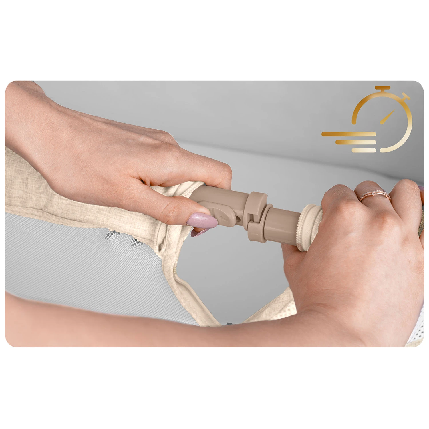 Łóżeczko dostawne umożliwia matce łatwe karmienie w nocy, bez konieczności wstawania i przechodzenia do innego pokoju. Dzięki regulacji łatwo dostosujesz wysokość łóżeczka do twojego materaca.