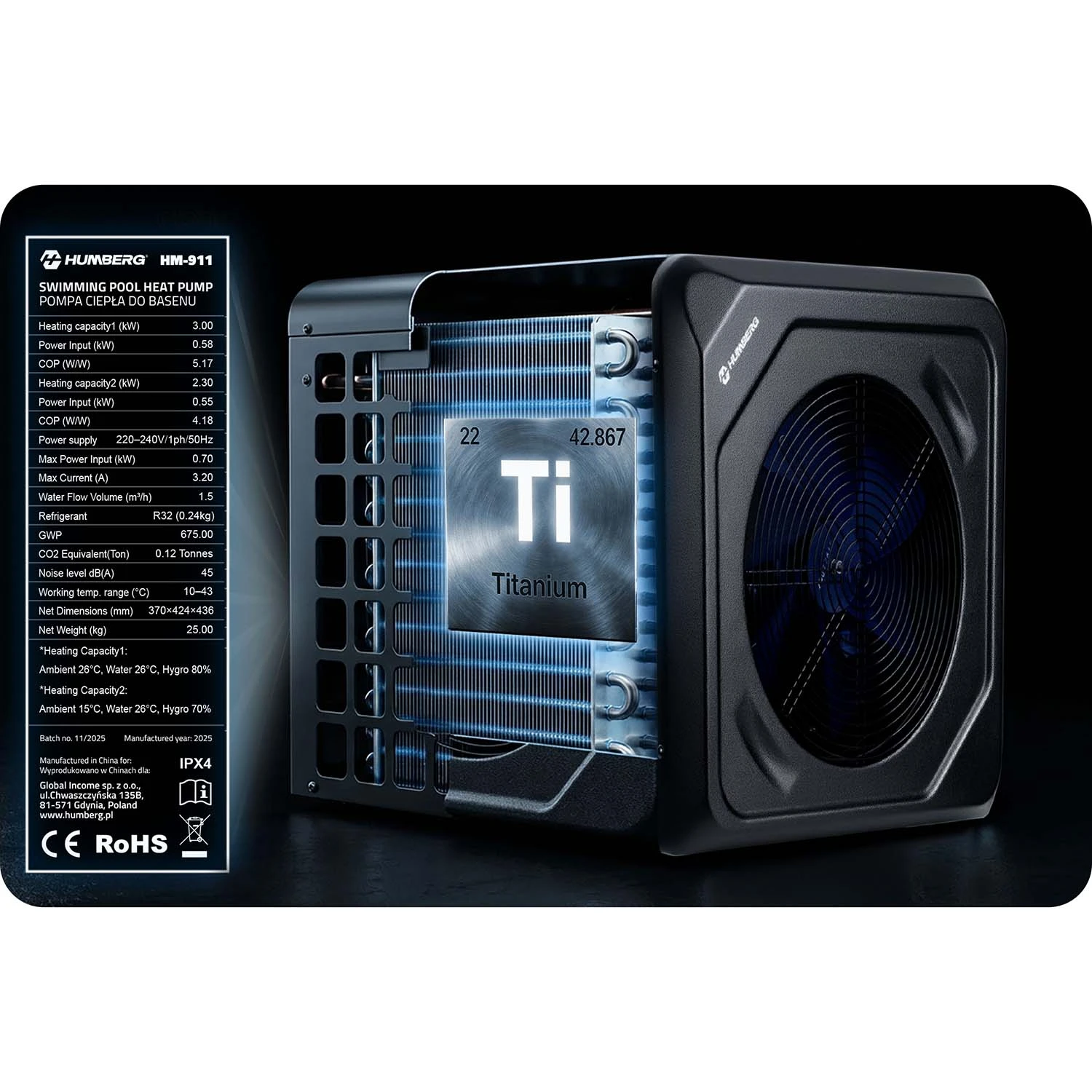 Pompa ciepła do basenu spa podgrzewacz wody 3kw Humberg HM-911