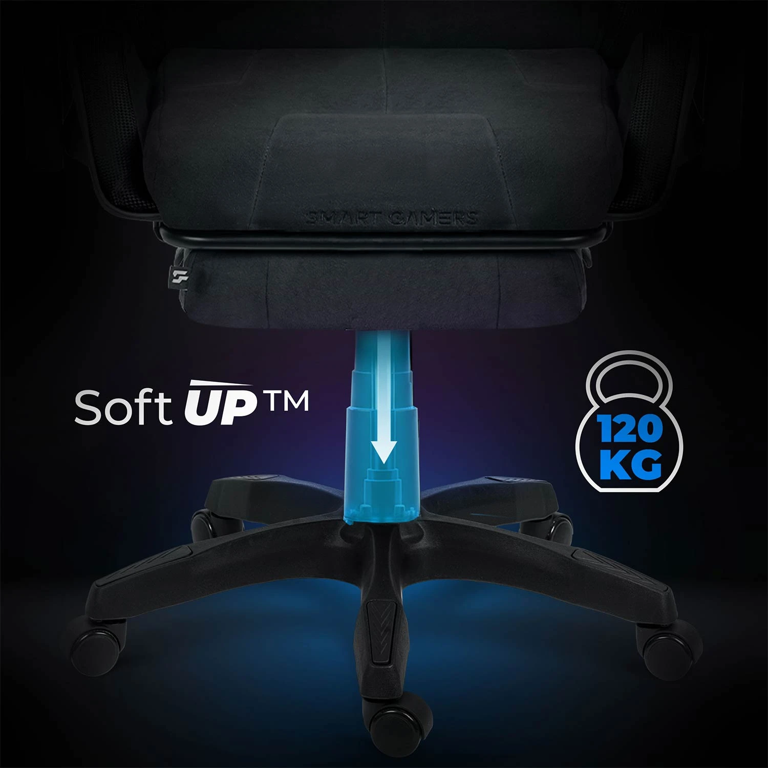 Mechanizm Soft UP™ umożliwia precyzyjną regulację wysokości fotela gamingowego, dzięki czemu idealnie dopasujesz go do biurka i swojego wzrostu. Wzmocniona konstrukcja oraz wytrzymałość do 120 kg gwarantują stabilność i bezpieczeństwo nawet podczas intensywnego użytkowania.