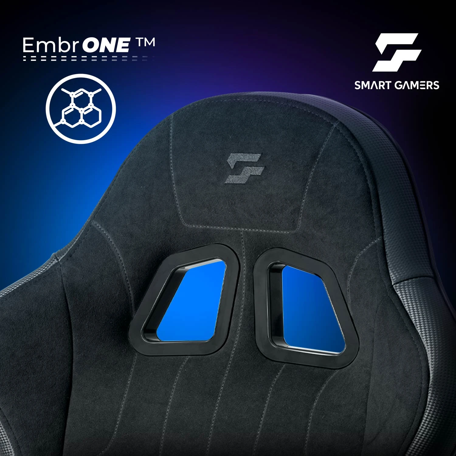 Struktura tapicerki EmbrONE™ wspiera cyrkulację powietrza, dzięki czemu siedzisko pozostaje komfortowe nawet podczas długich sesji. Miękkie, profilowane wypełnienie dopasowuje się do ciała, zmniejsza nacisk na uda i pozwala zachować wygodę przez wiele godzin grania lub pracy.